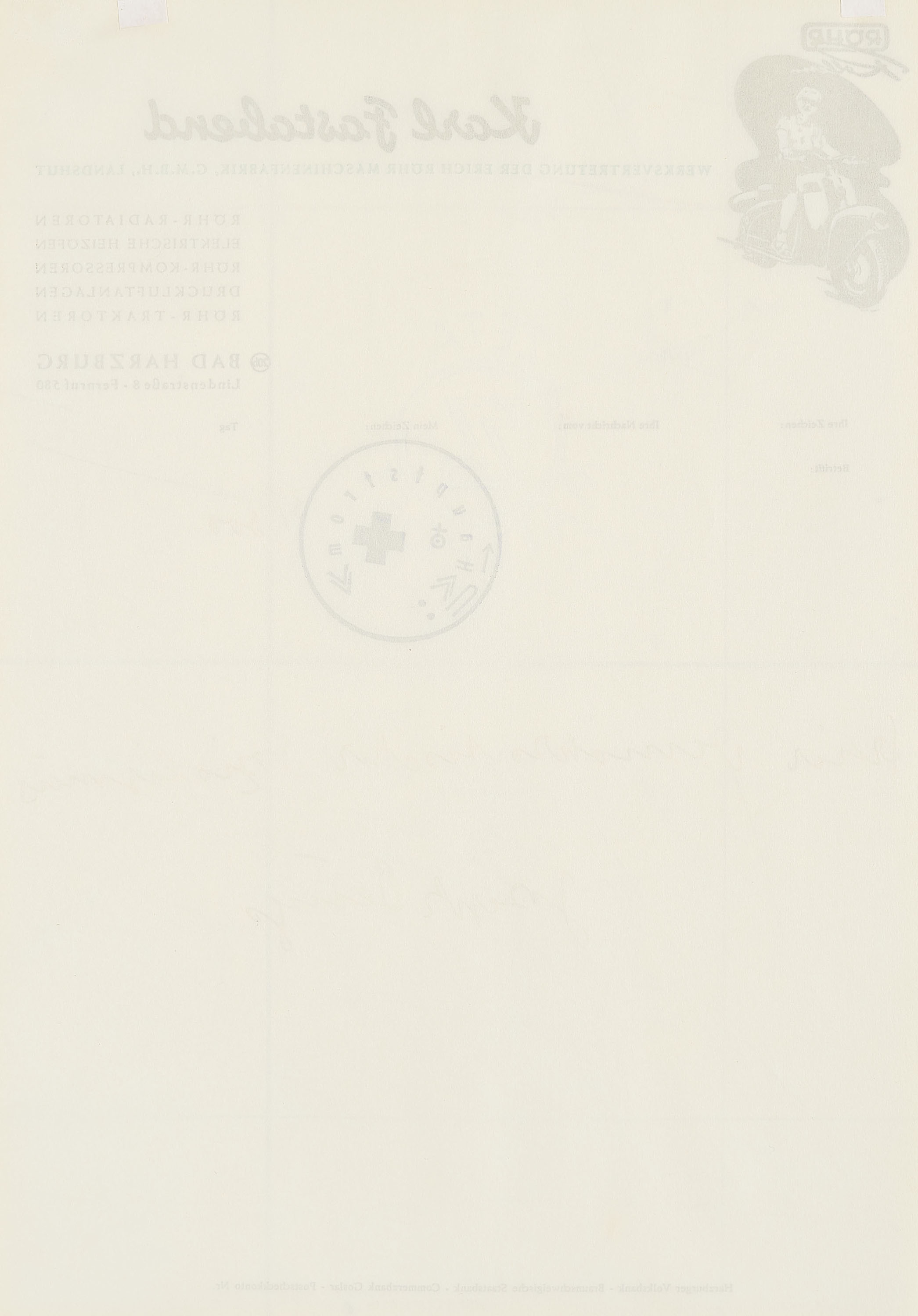 Briefpapier mit handschriftlichem Text, gestempelt.