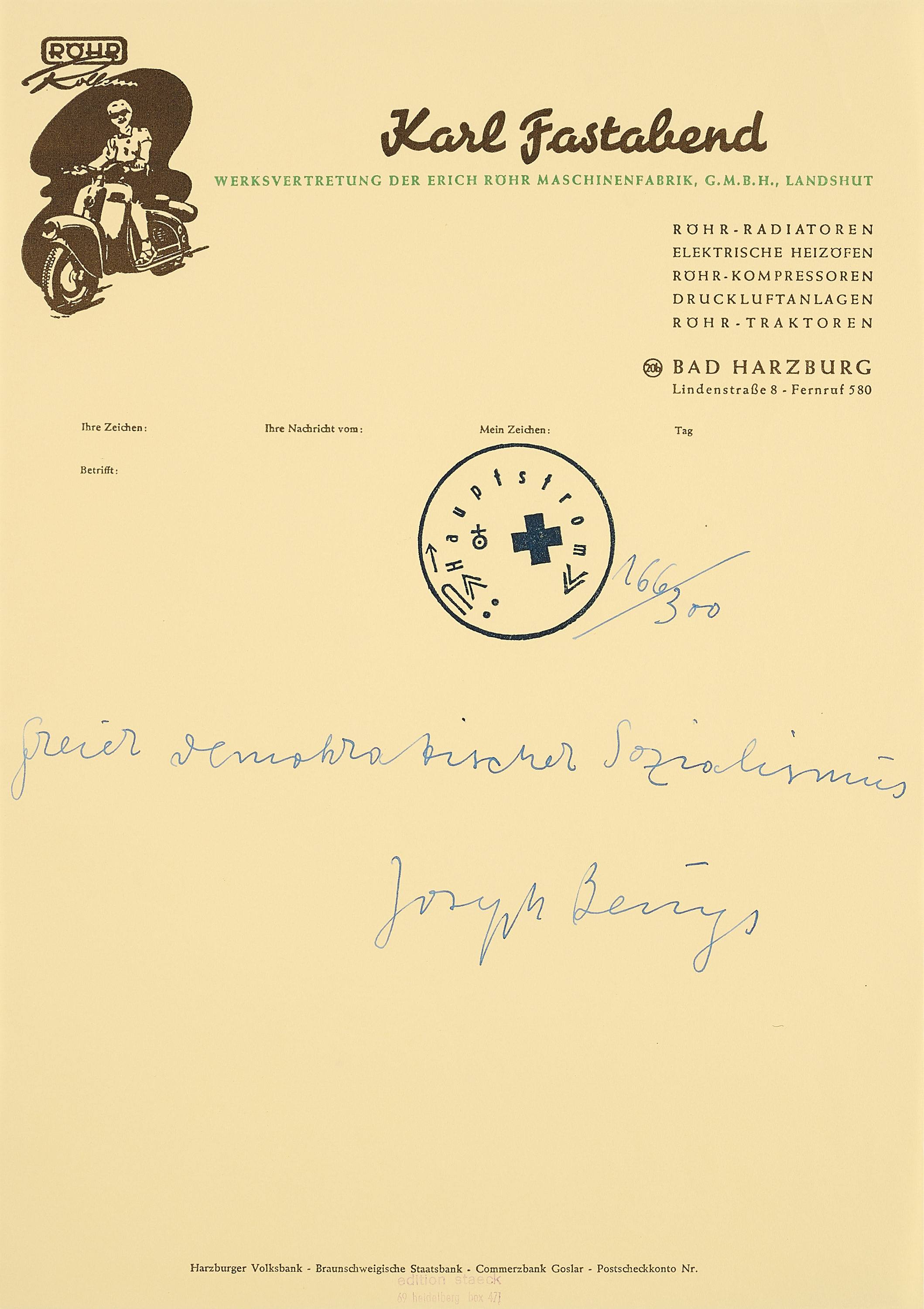 Von der geplanten Auflage von 300 Exemplaren wurden nur 164 fertiggestellt. Mit dem Stempel der Edition Staeck, Heidelberg.
