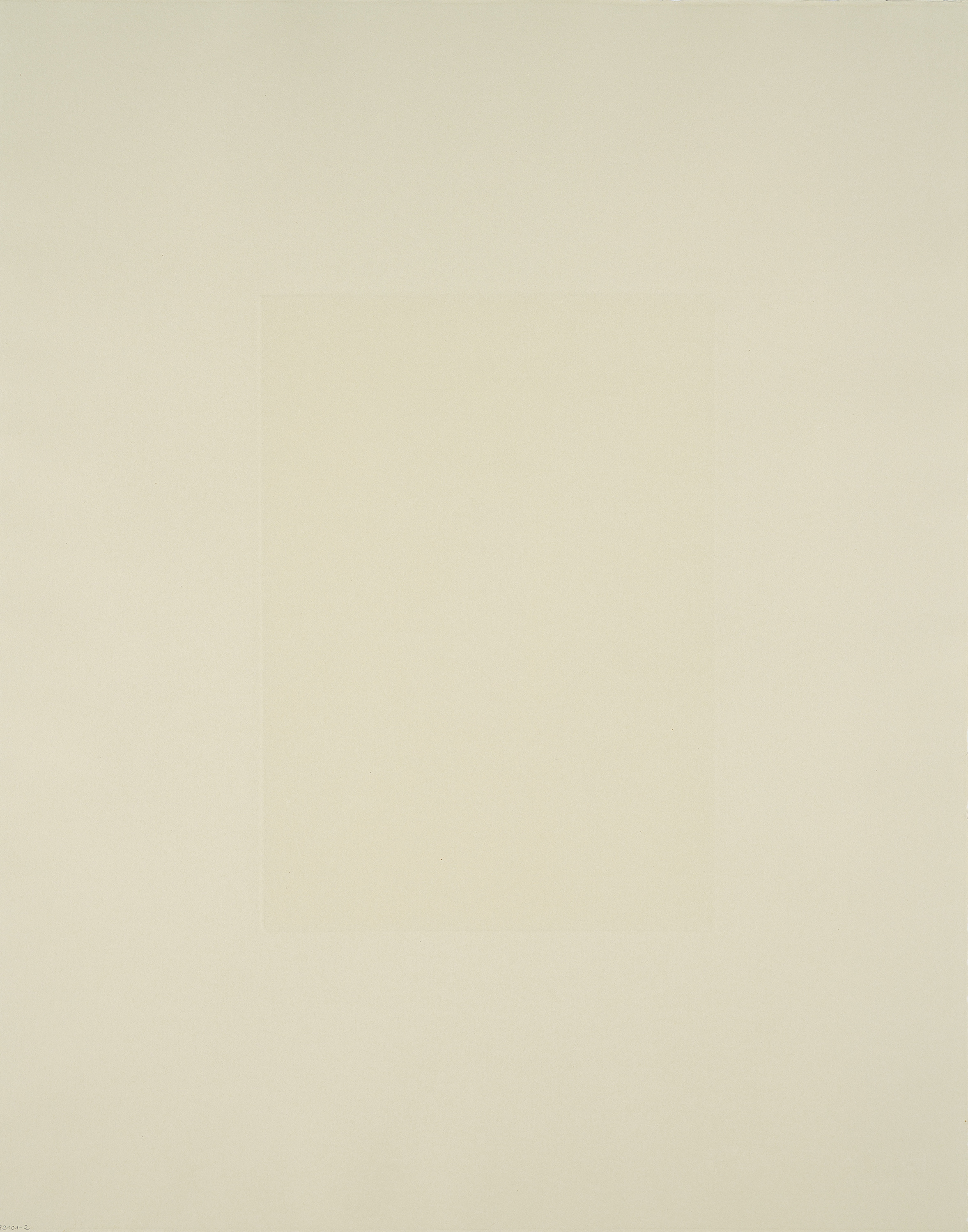 Technik: Farbradierung auf dünnem Velin, aufgewalzt auf graues BFK Rives (Wasserzeichen).