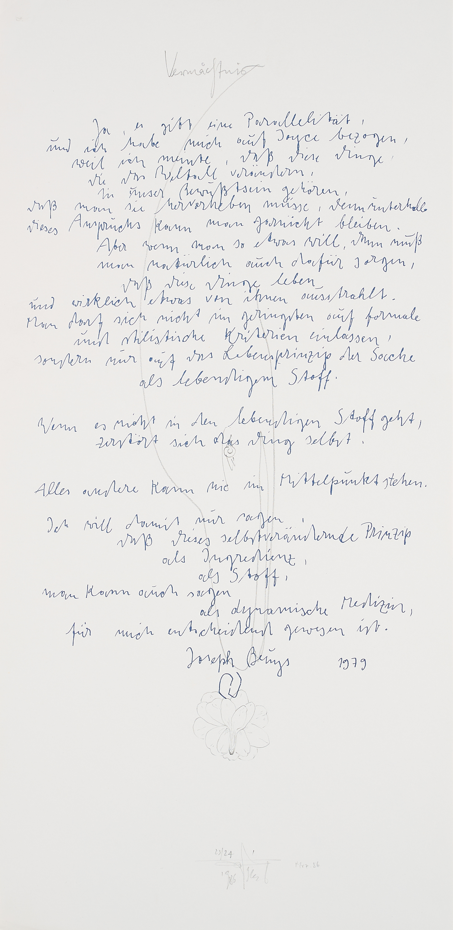 Weiteres Exemplar der Druckgrafik auf größerem Blatt mit Bleistiftzeichnung des Künstlers.