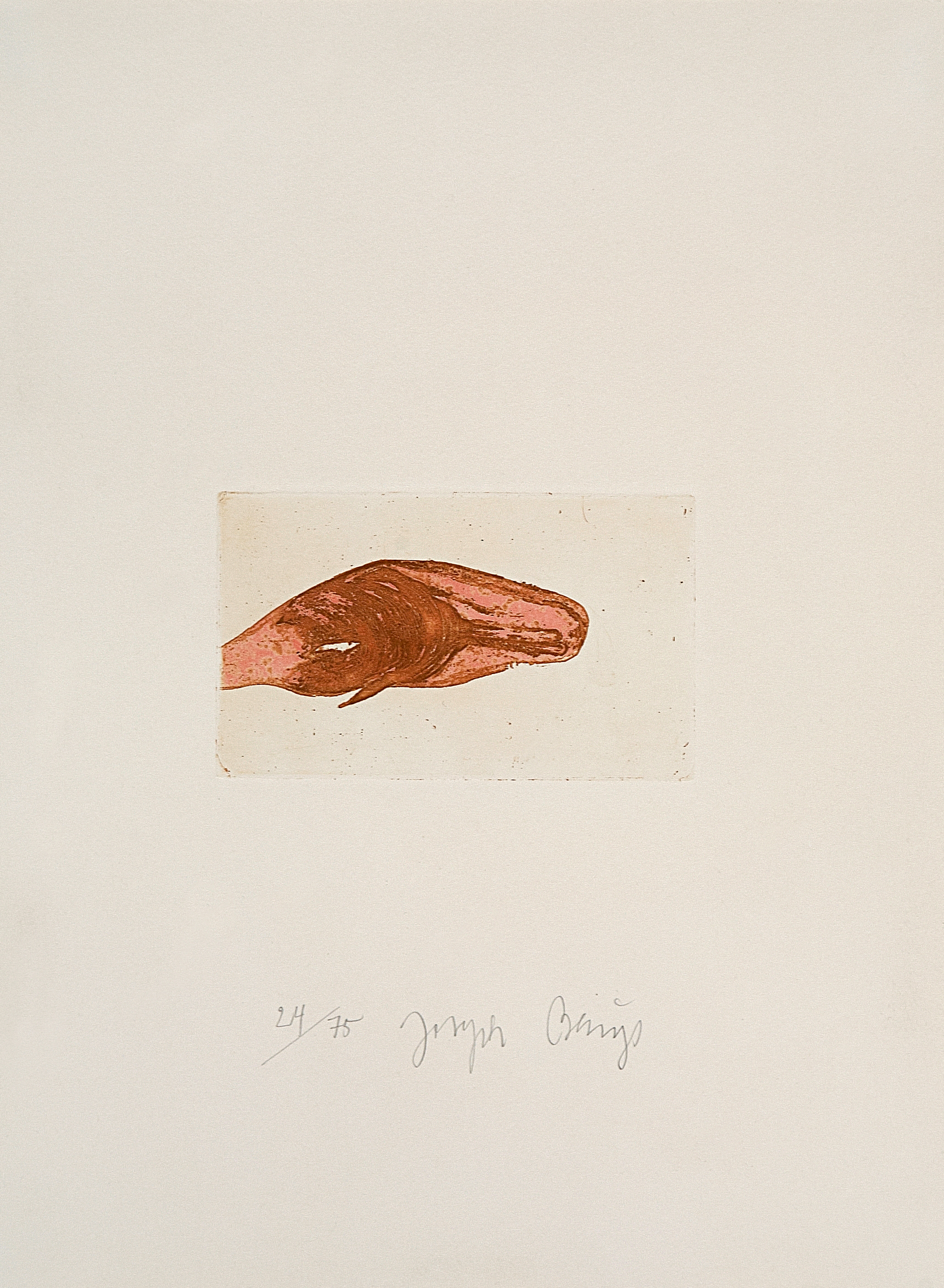 1921 Krefeld - 1986 DüsseldorfMeerengel Sperm-Wal. Farbige Radierung und Aquatinta. weißem Bütten auf 8,4. 14cm (38cm). 24/75. Ansonsten in tadellosem Zustand.