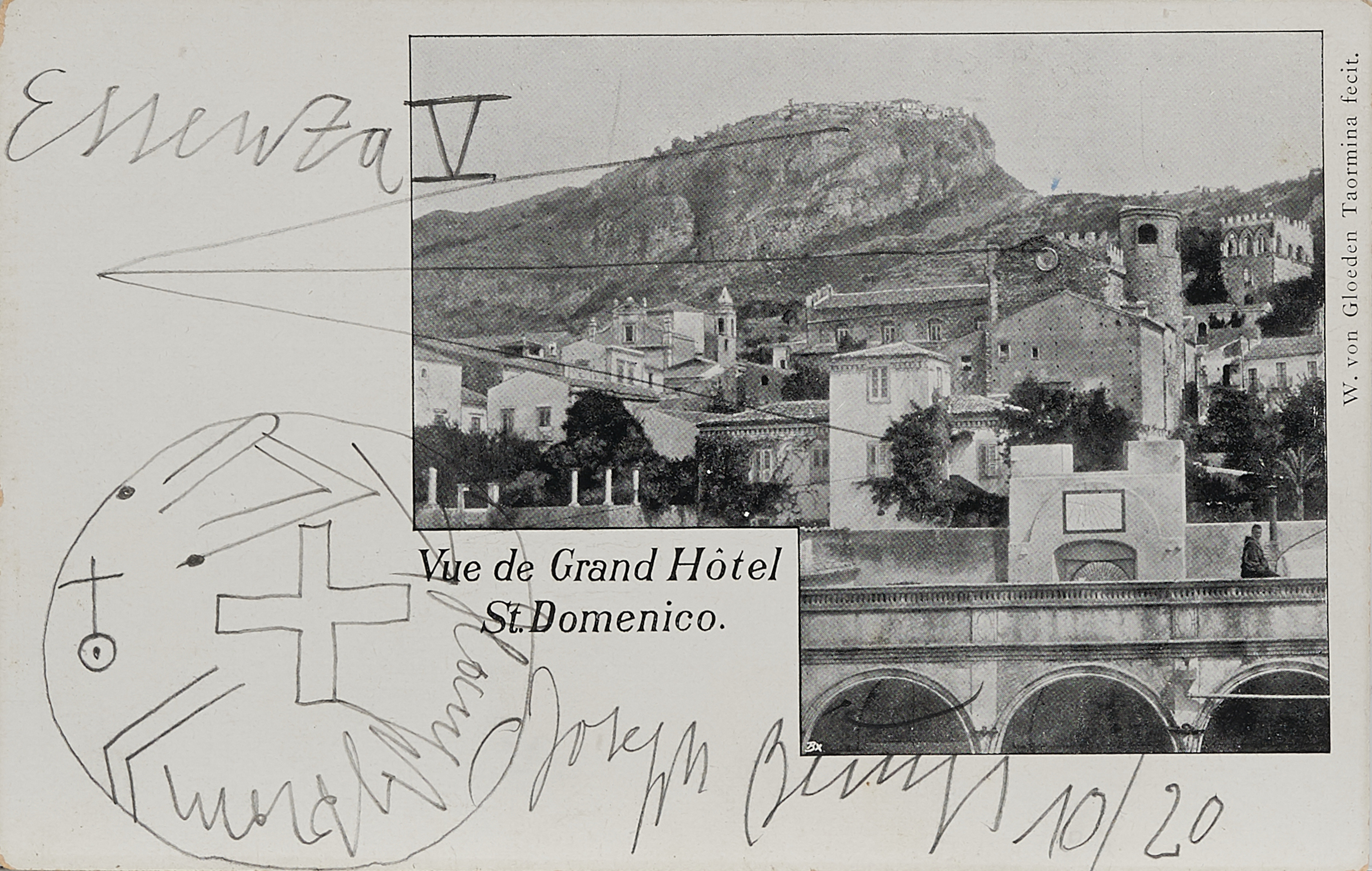 Aus: "Von Gloeden-Postkarten". 1978. a) Palazzo Duca St. Stefano. b) St. Domenico. 2 Postkarten, jeweils handschriftlich