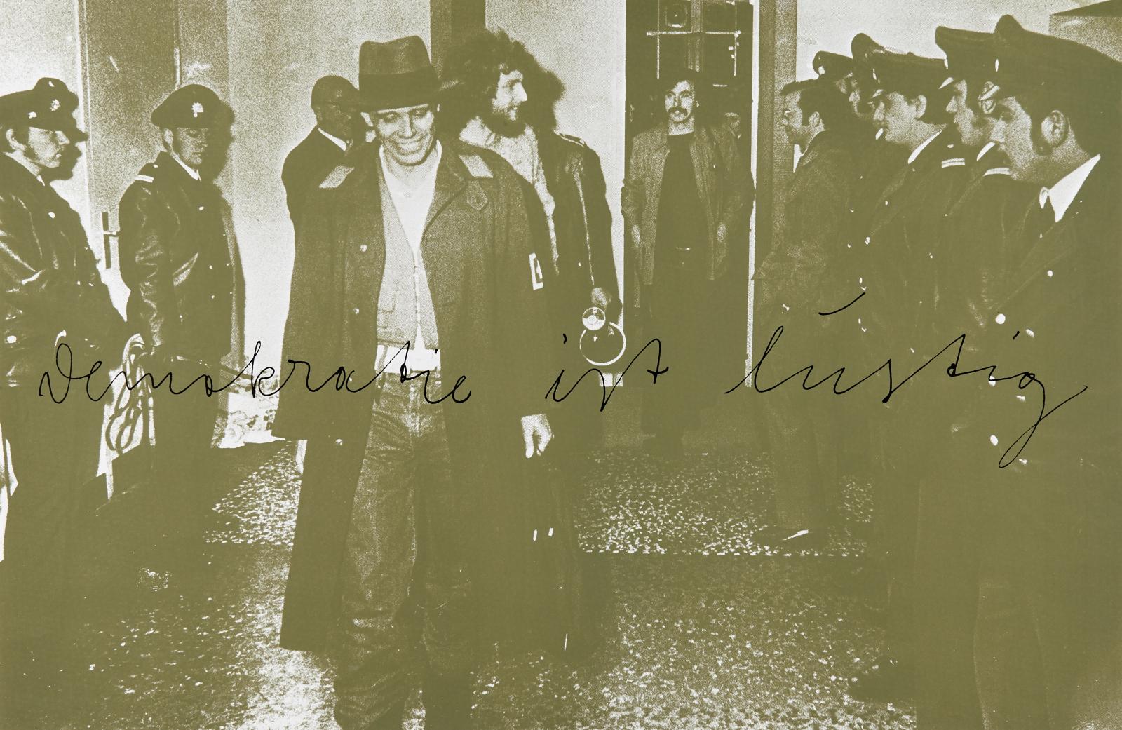 Demokratie ist lustig. Plakat. 1973. Farbserigrafie auf Papier. 75 x 114cm Edition Staeck, Heidelberg (Hrsg.). - Verso minimale Verschmutzungen.