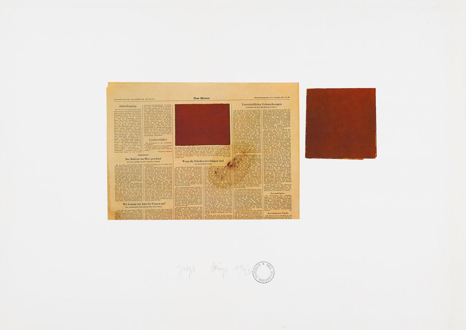 Der Motor. 1980. Farboffset, gestempelt (FREE INTERNATIONAL UNIVERSITY) auf Karton. 28,5 x 56cm (69,5 x 97cm). Signiert und nummeriert. Vereiniging voor het Museum van hedendaagse Kunst, Gent (Hrsg.). Ex. 118/250. - Leichte Knickspuren. Kleine Bestoßungen. Im rechten Randbereich minimal gebräunt. Kleine Bräunungsflecken im unteren und oberen Randbereich. Verso Bräunungsflecken im unteren rechten Randbereich.