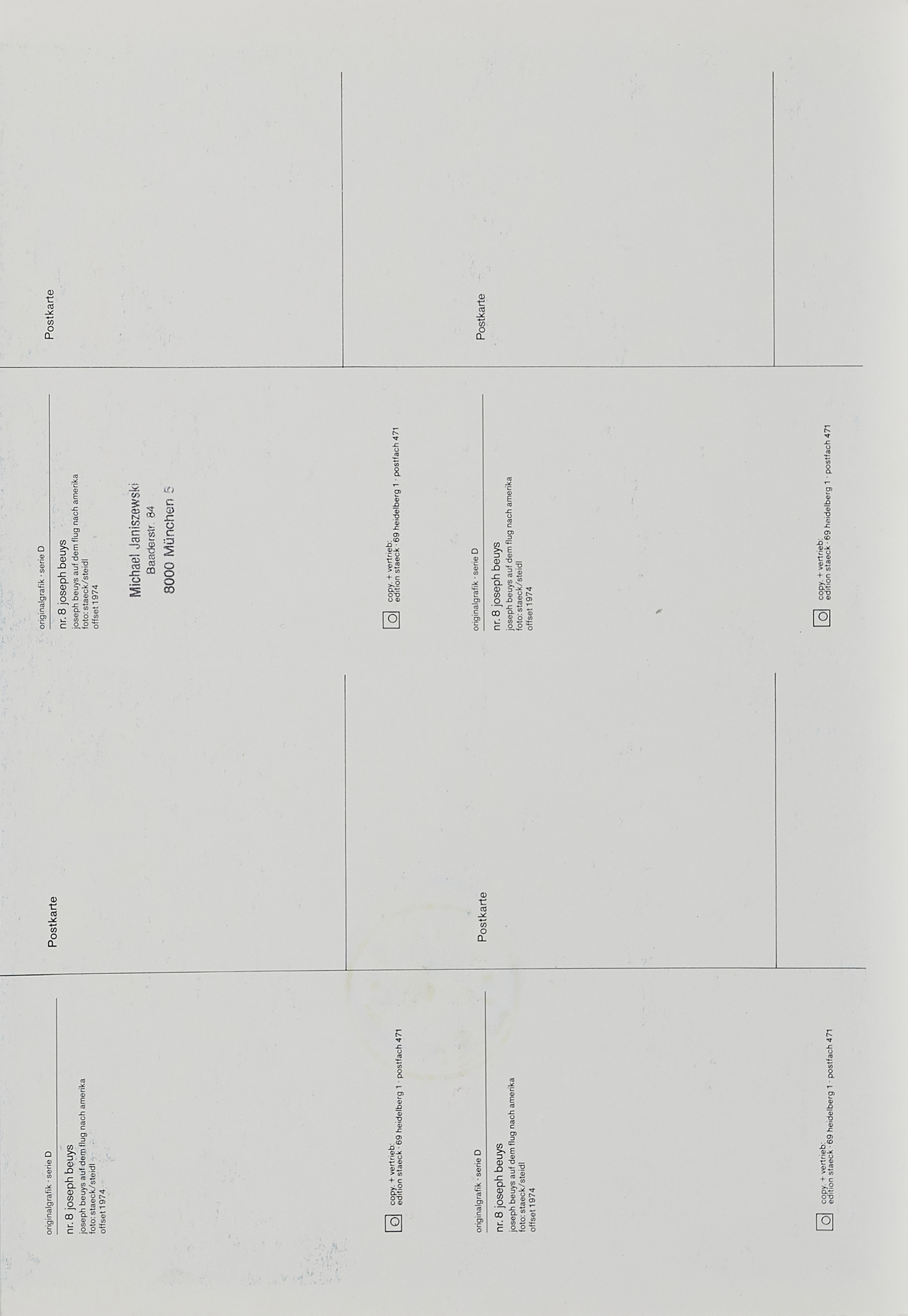 Flug nach Amerika. Andruckbogen. 1974/84. Farboffset auf Karton. 31 x 22cm (33 x 23cm). Signiert, nummeriert und gestempelt (Hauptstrom). Edition Staeck, Heidelberg (Hrsg.). Ex. 129/180.