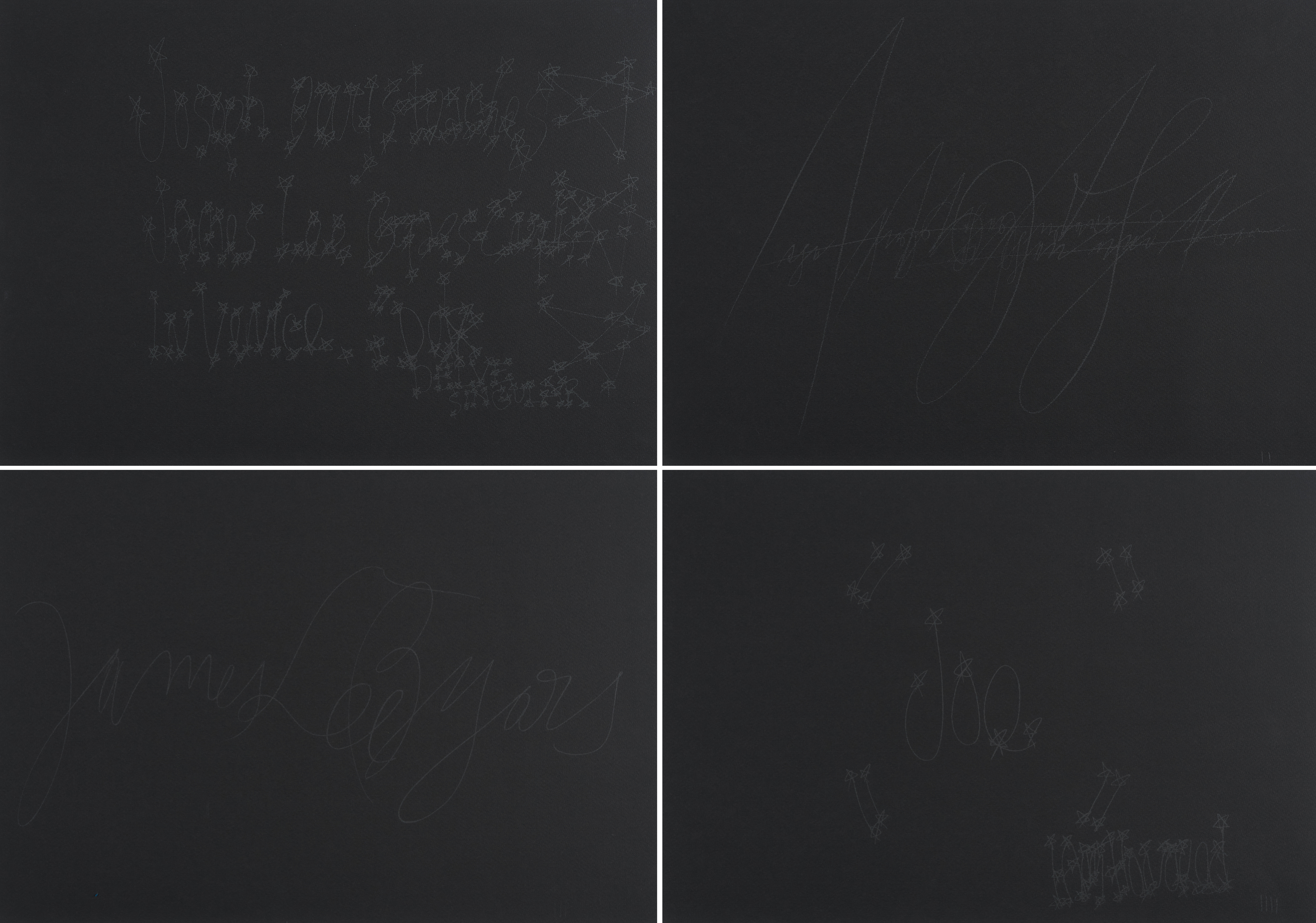 Frammenti Veneziani. Holzkassette mit 5 Serigrafien. 1980. Jeweils: Farbserigrafie und Graphit auf schwarzem Bütten. 35 x 50cm (Kassette: 39 x 54 x 4cm). Verso signiert und nummeriert. Edizioni Factotum-Art, Verona (Hrsg.). Ex. 1/50.