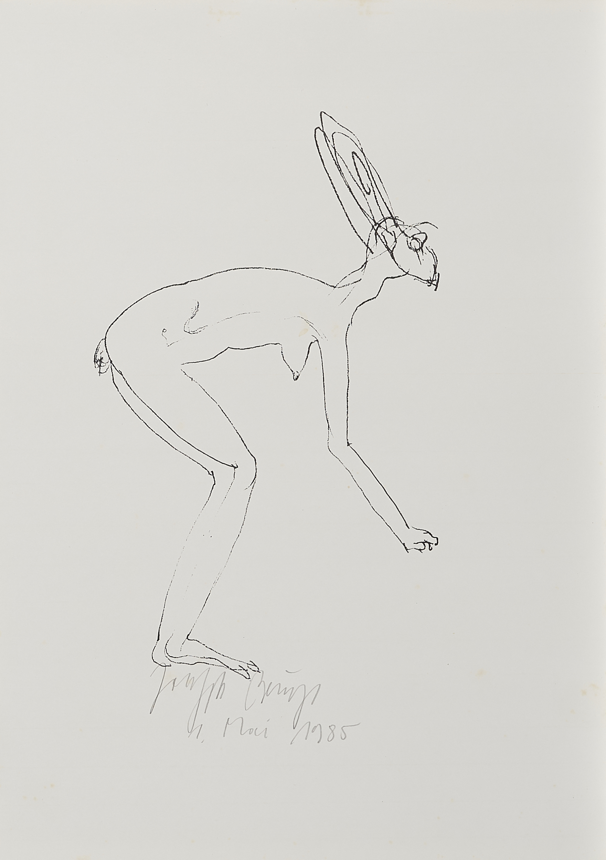 Hasenfrau. 1985. Offset auf Velin. 28 x 18cm (42,5 x 30,5cm). Signiert und datiert.