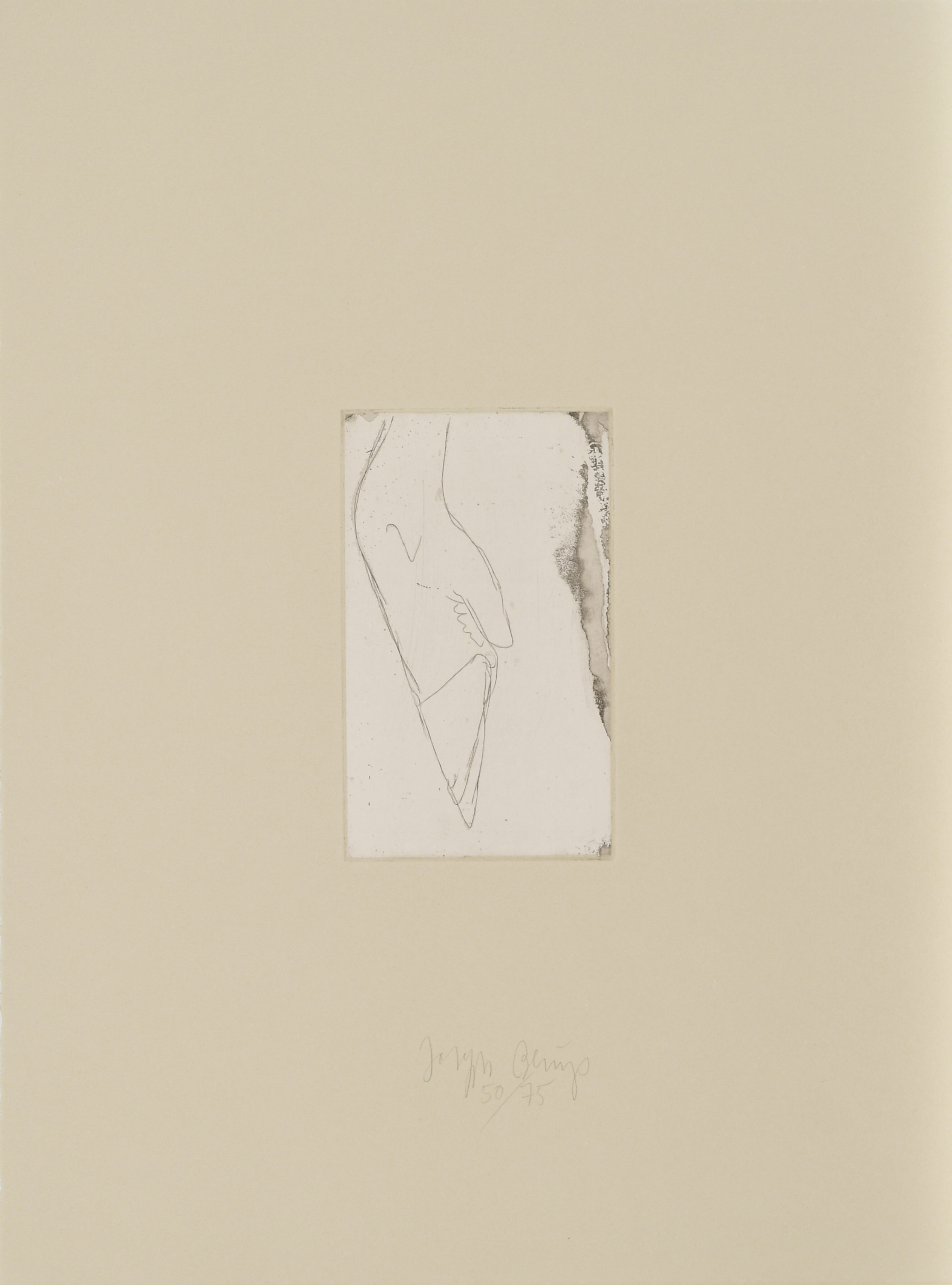 Hirsch-Fuß. 1985. Radierung auf Papier, auf grauem Bütten aufgewalzt. 15 x 9cm (43,5 x 32cm). Signiert und nummeriert. Grafos-Verlag, Vaduz (Hrsg.). Ex. 50/75.