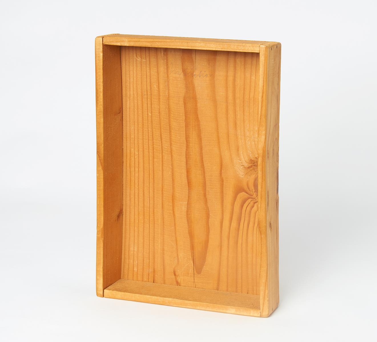 Intuition. (Intuition ... statt Kochbuch. Aus der Reihe "Zeitkunst im Haushalt"). 1968. Holzkiste mit Bleistiftzeichnung. 30 x 20,5 x 6cm. Signiert und datiert verso: Joseph Beuys 1968. Auf der Innenseite mit Zeichnung und Beschriftung. Vice Versand, Remscheid (Hrsg.).
