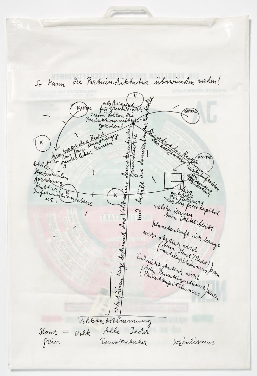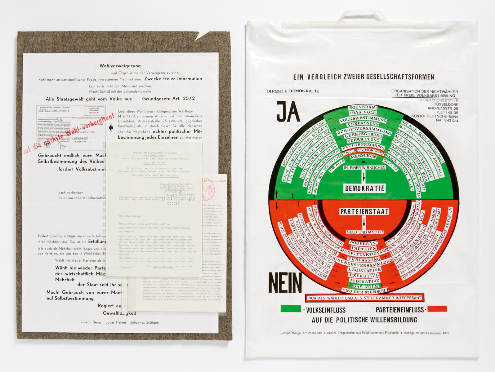 So kann die Parteiendiktatur überwunden werden. 1971. PE-Tragetasche mit Filzobjekt, Plakat, Informationsmaterial (15 Blatt) und