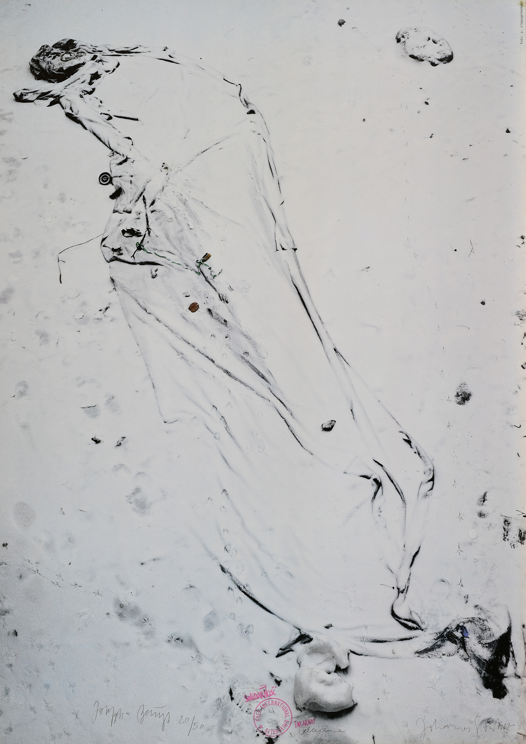 Solidarnosc incarnat. 1981. Farboffset auf Velin. 84 x 59,5cm Signiert von Joseph Beuys, Felix Droese und Johannes Stüttgen und datiert. Felix Droese, Düsseldorf (Hrsg.). Ex. 20/50.