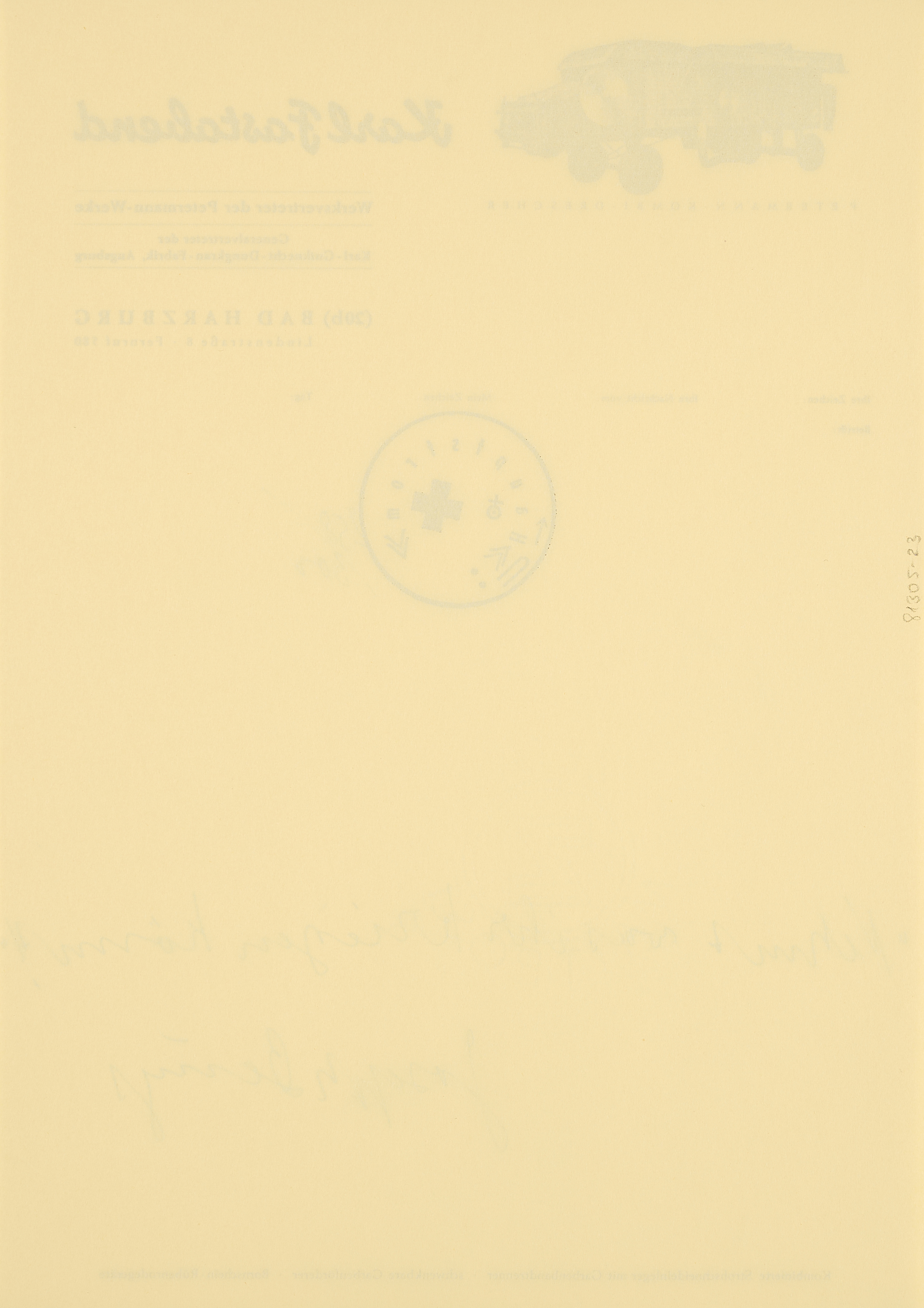 Technik: Handschriftlicher Text auf chamoisfarbenem Briefpapier, gestempelt.