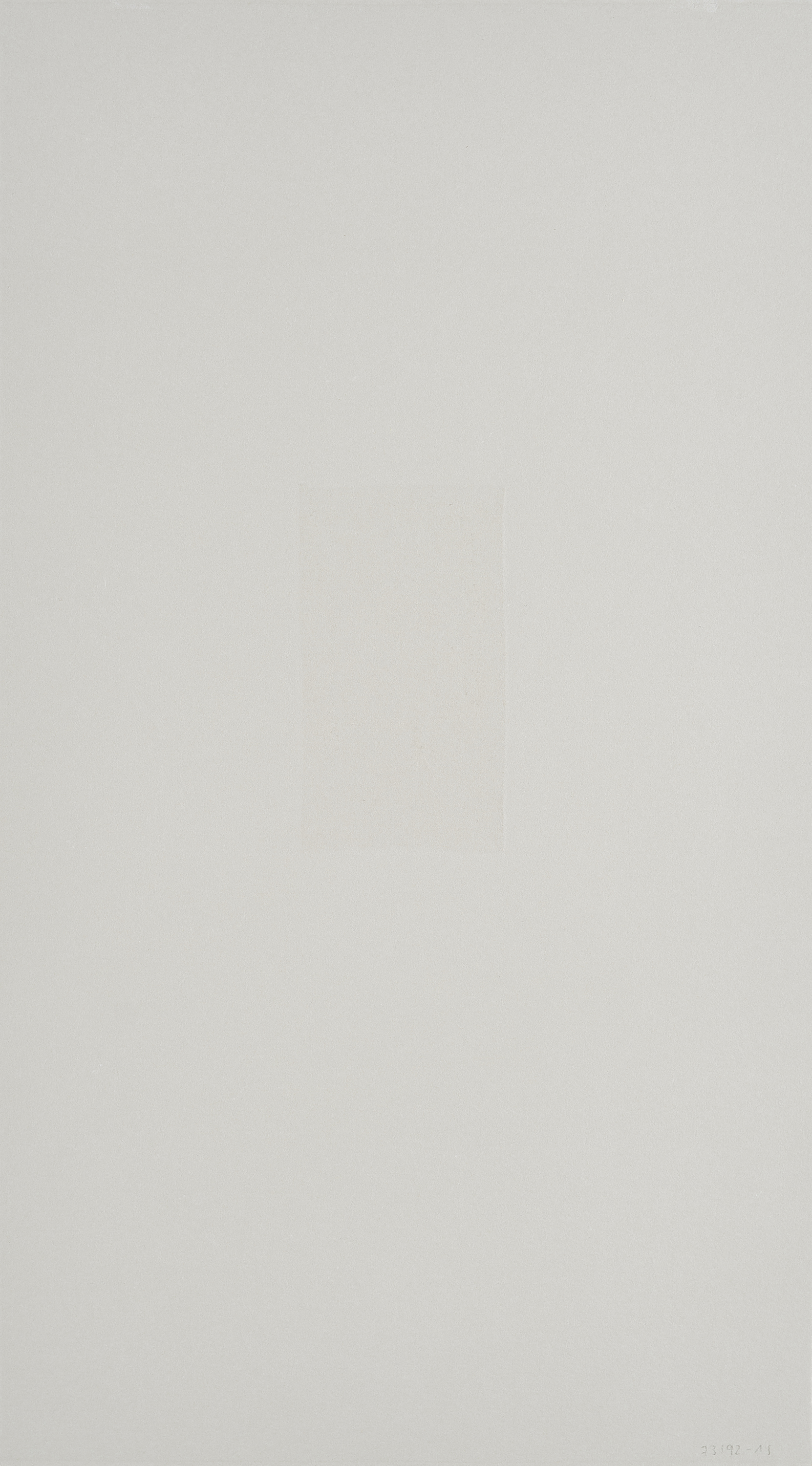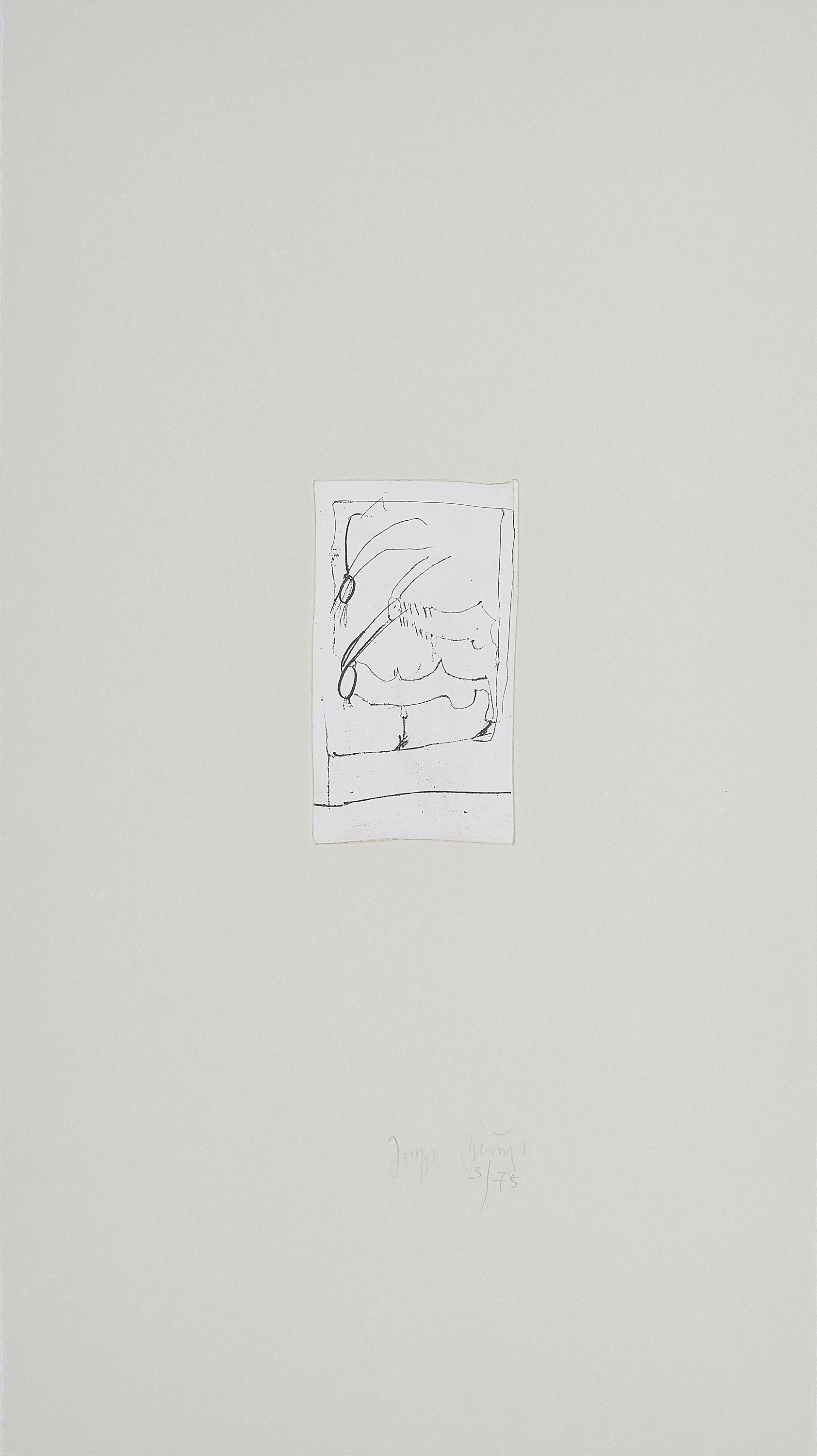 Technik: Farbradierung auf dünnem Velin, aufgewalzt auf grauem Bütten.