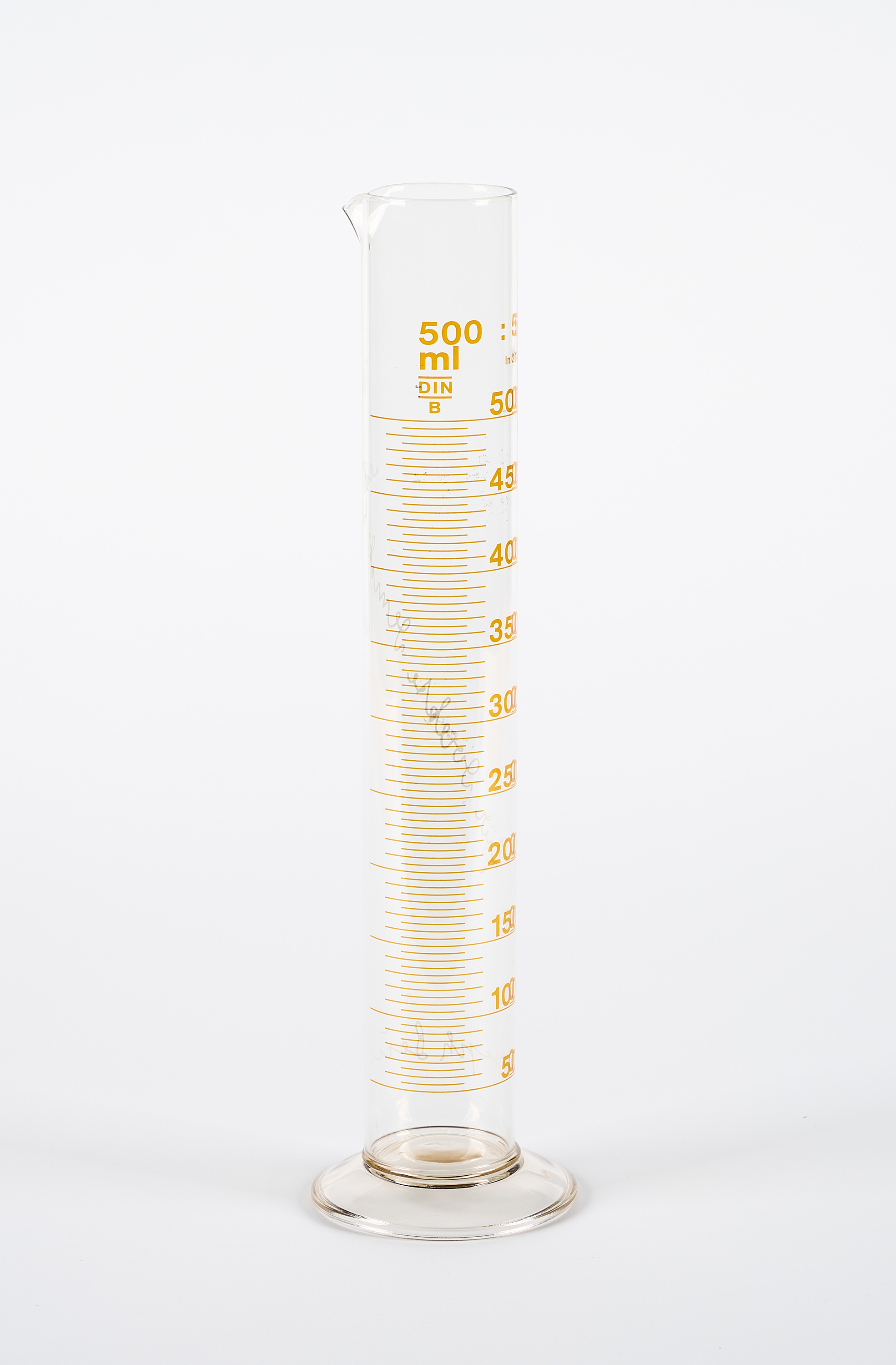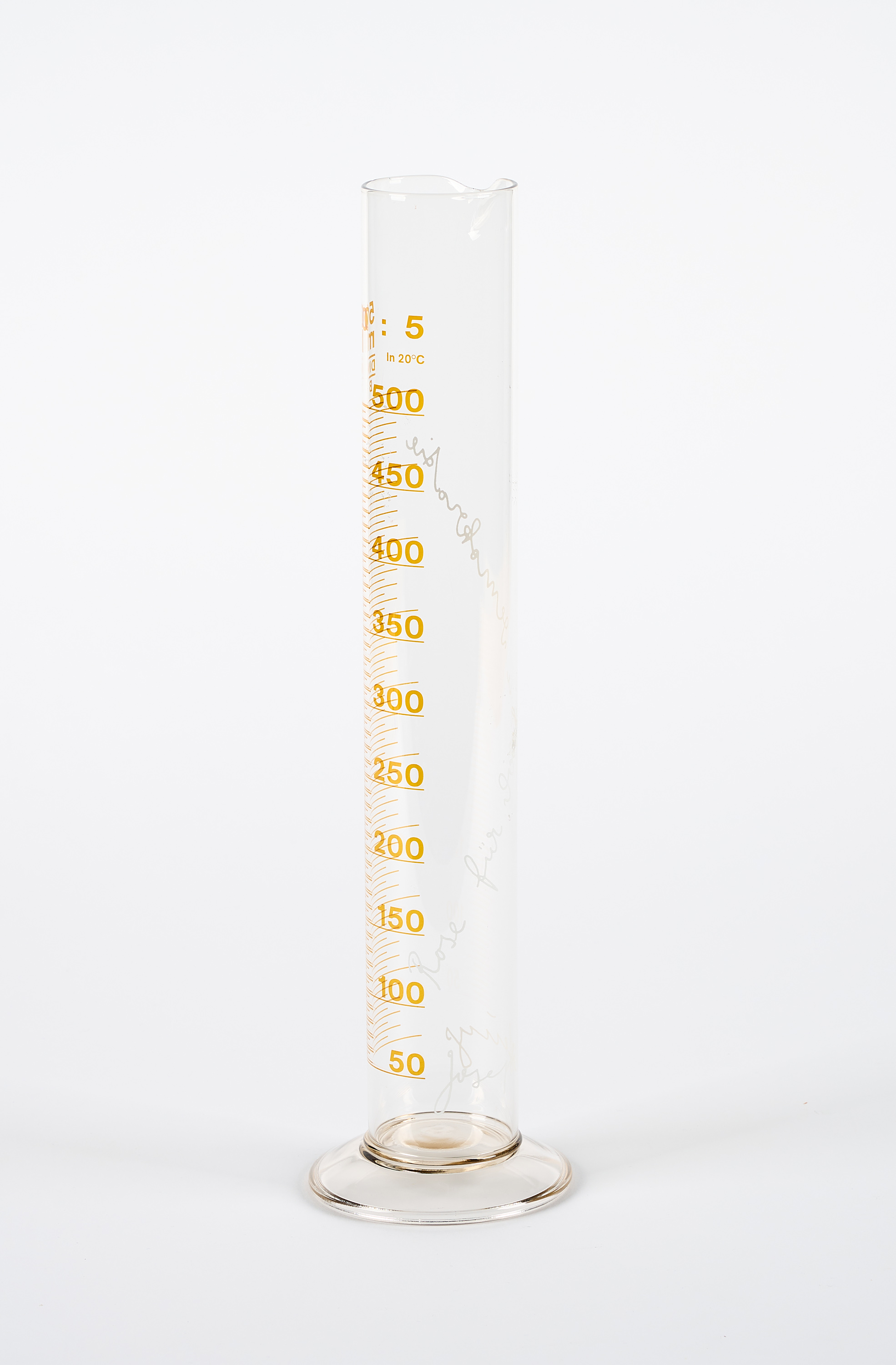 Technik: Farbserigrafie auf Messzylinder aus Glas.