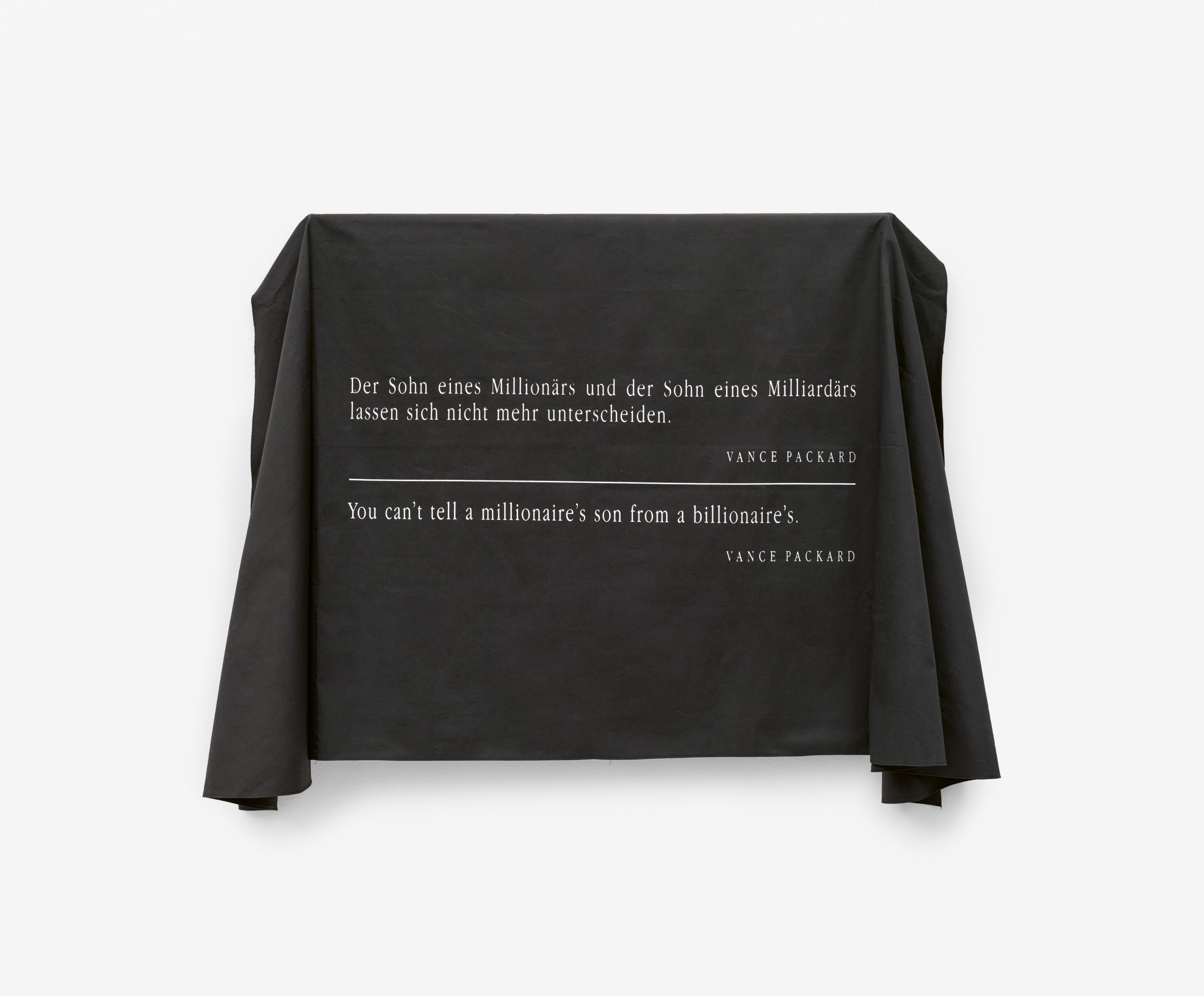 Das Fragment ist Teil einer Installation, die Kosuth für die documenta 1992 schuf. Unzählige weitere mit Zitaten bedruckte Stoffe verhüllten die in der Neuen Galerie ausgestellten Bilder und Skulpturen.