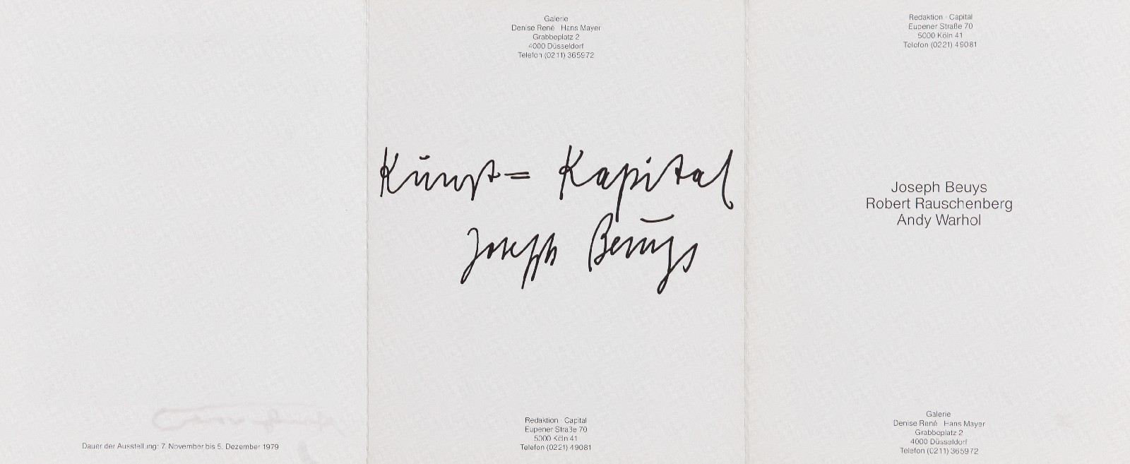 Ohne Titel. Einladungskarte zur Ausstellung "Joseph Beuys / Robert Rauschenberg / Andy Warhol", bei