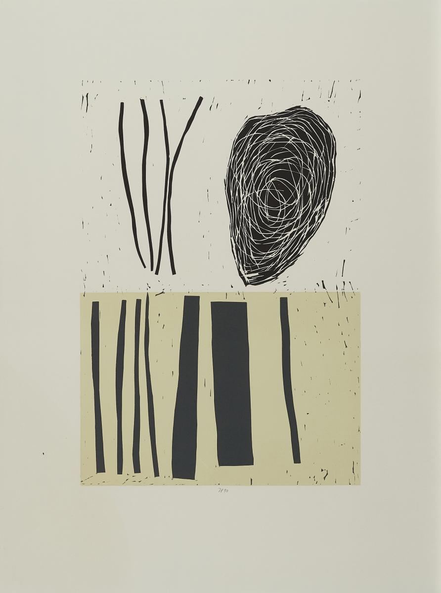 Serie von 6 Linolschnitten. 1989/90. Jeweils: Farblinolschnitt auf RIVES (Wasserzeichen). 60,5 x 42cm (89,5 x 66,5cm). Monogrammiert und datiert. Griffelkunst-Vereinigung Hamburg-Langenhorn e.V. (Hrsg.).
