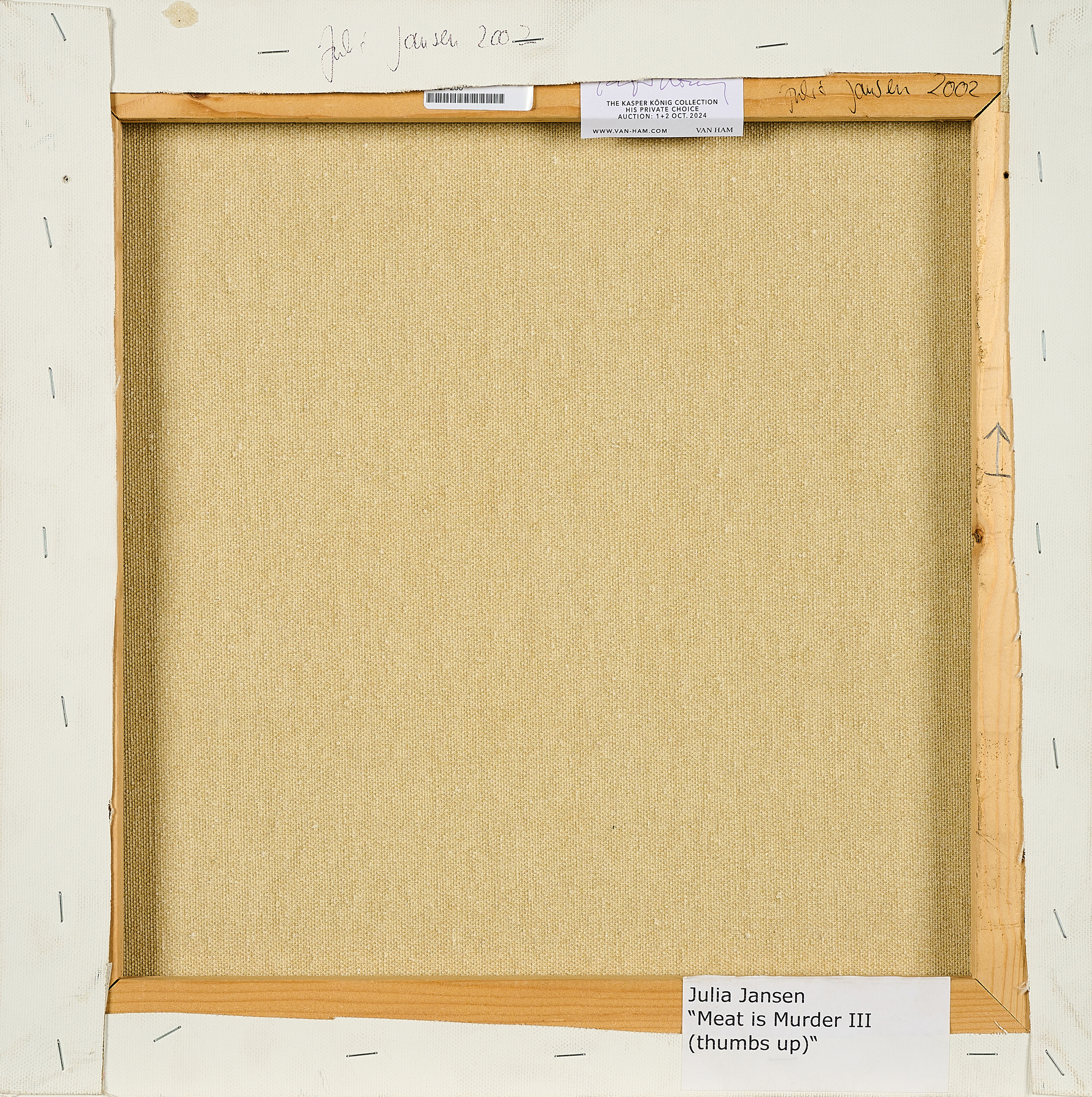 Bezeichnung: Signiert und datiert verso auf Keilrahmen: Julia Jansen 2002. Sowie signiert und datiert auf umgeschlagener Leinwand: Julia Jansen 2002.