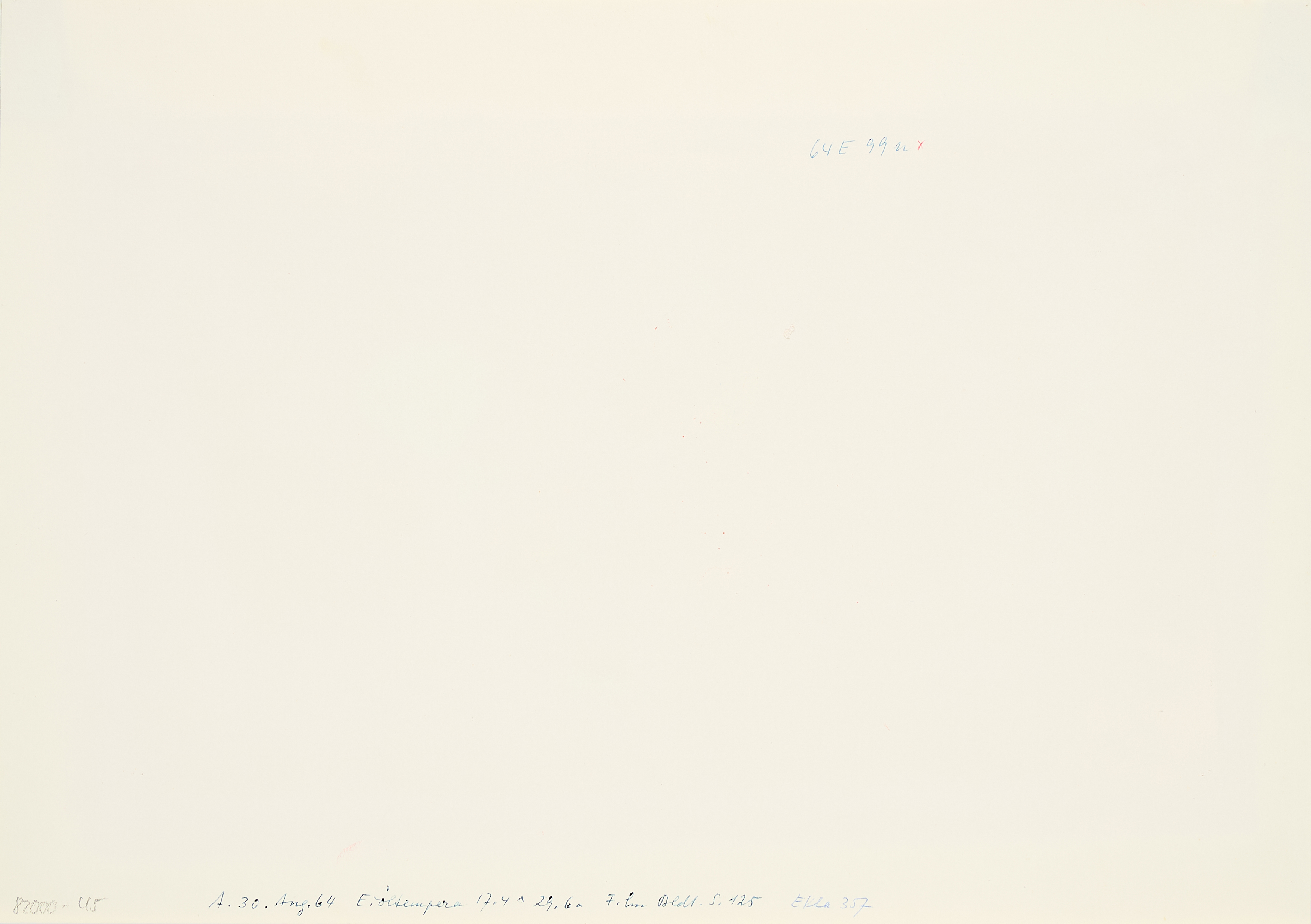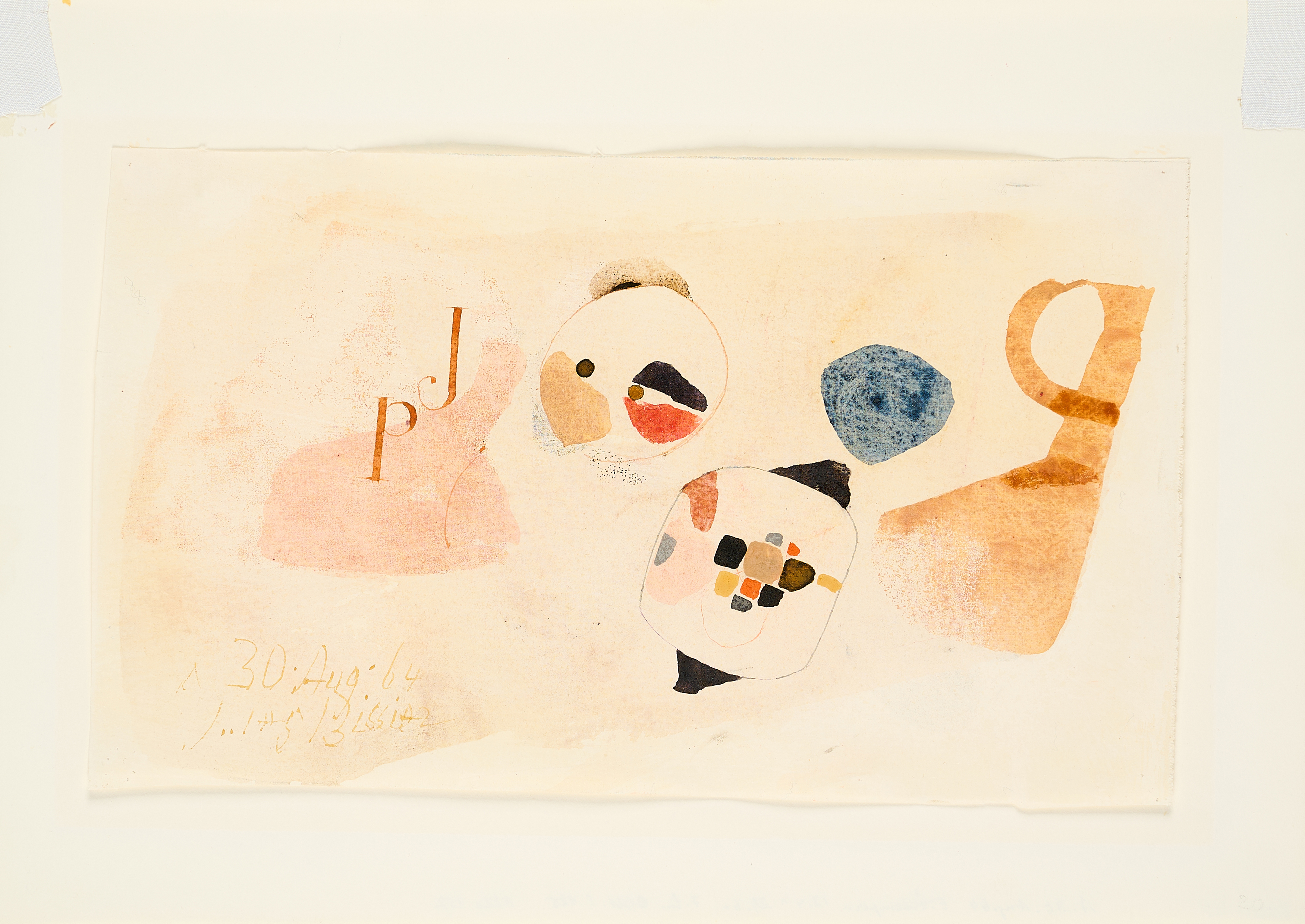 Bezeichnung: Bezeichnet, datiert und signiert unten links: A. 30. Aug. 64 Julius Bissier. Auf dem Unterlagekarton verso unten mit Werkangaben (wohl von Hand Lisbeth Bissiers).