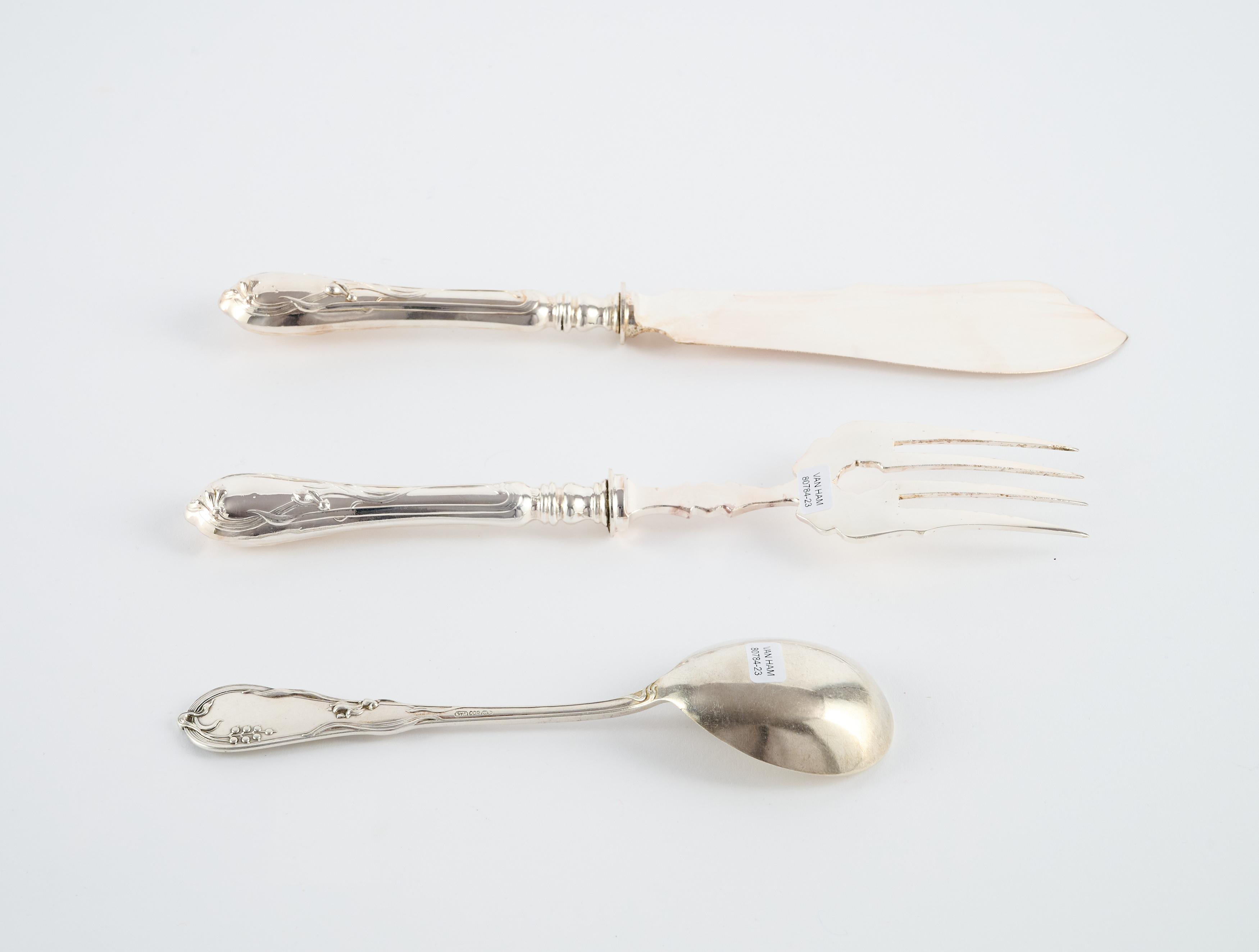 Beschreibung: Die Griffe jeweils mit reliefierten Orchideenranken und Monogramm. Insgesamt 40 Teile, bestehend aus: