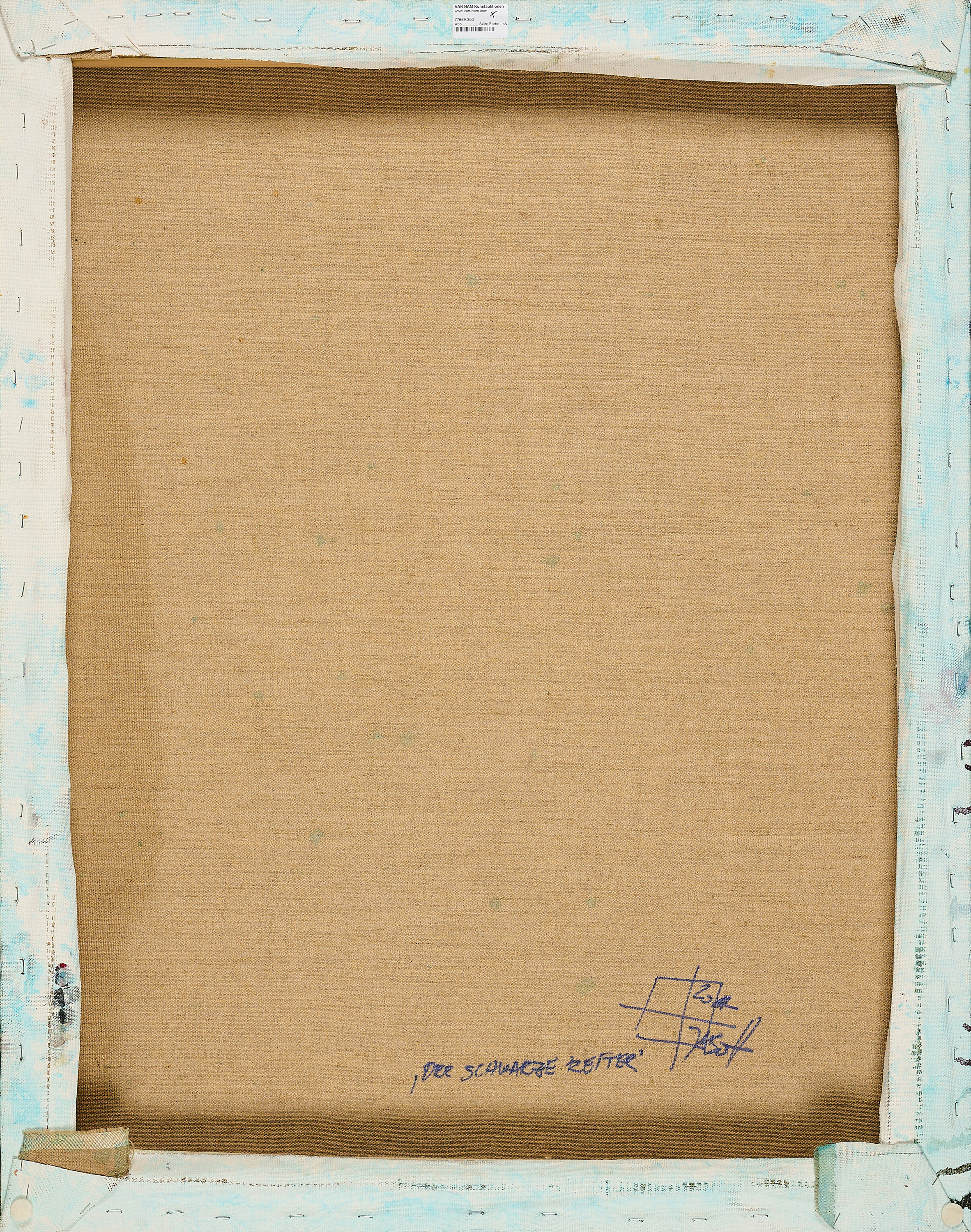 Bezeichnung: Betitelt, datiert und signiert verso: 'DER SCHWARZE REITER' 2011 Jusott (Künstlersignet).