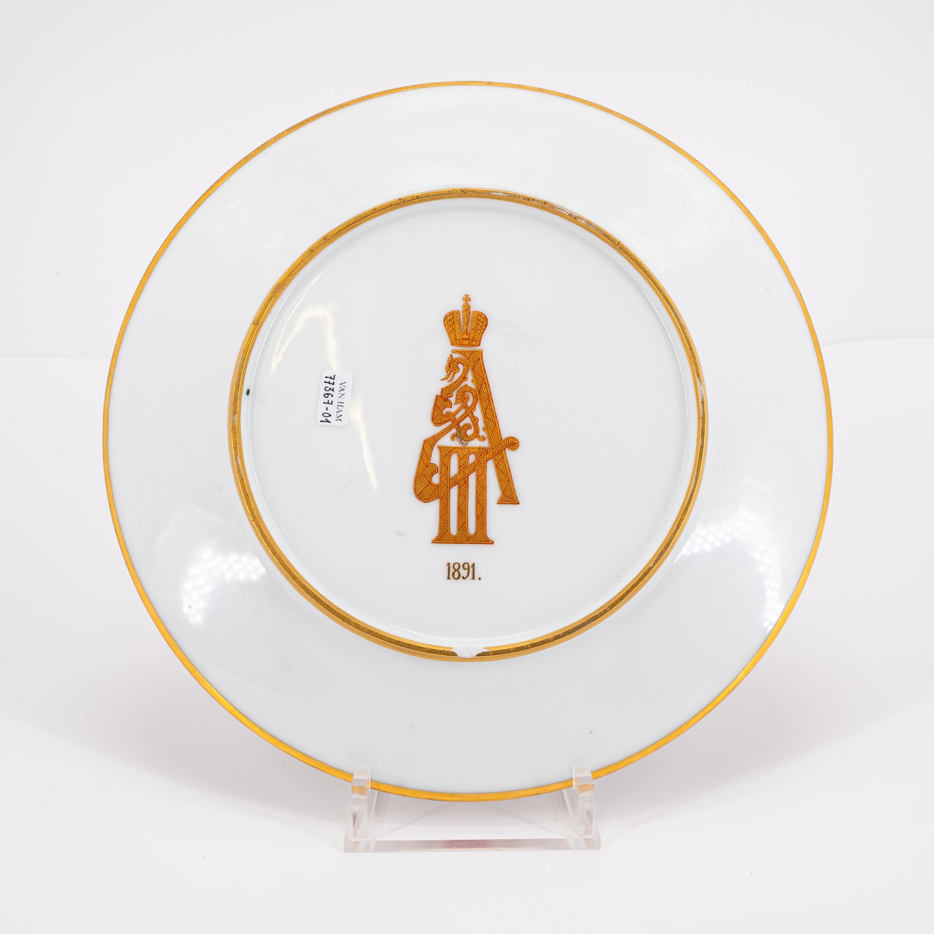 Das Service, aus welchem der hier vorliegende Teller stammt, wurde 1893 für den Palast in Zarkoje Selo in Auftrag gegeben und war das umfangreichste und bedeutendste Service, welches in der Kaiserlichen Porzellanfabrik erschaffen wurde. Die Entwürfe gehen auf die Fresken Raffaels in den Loggien des Vatikans zurück, welche später von Quarenghi während der Herrschaft Katharinas der Großen im Winterpalast reproduziert wurden.