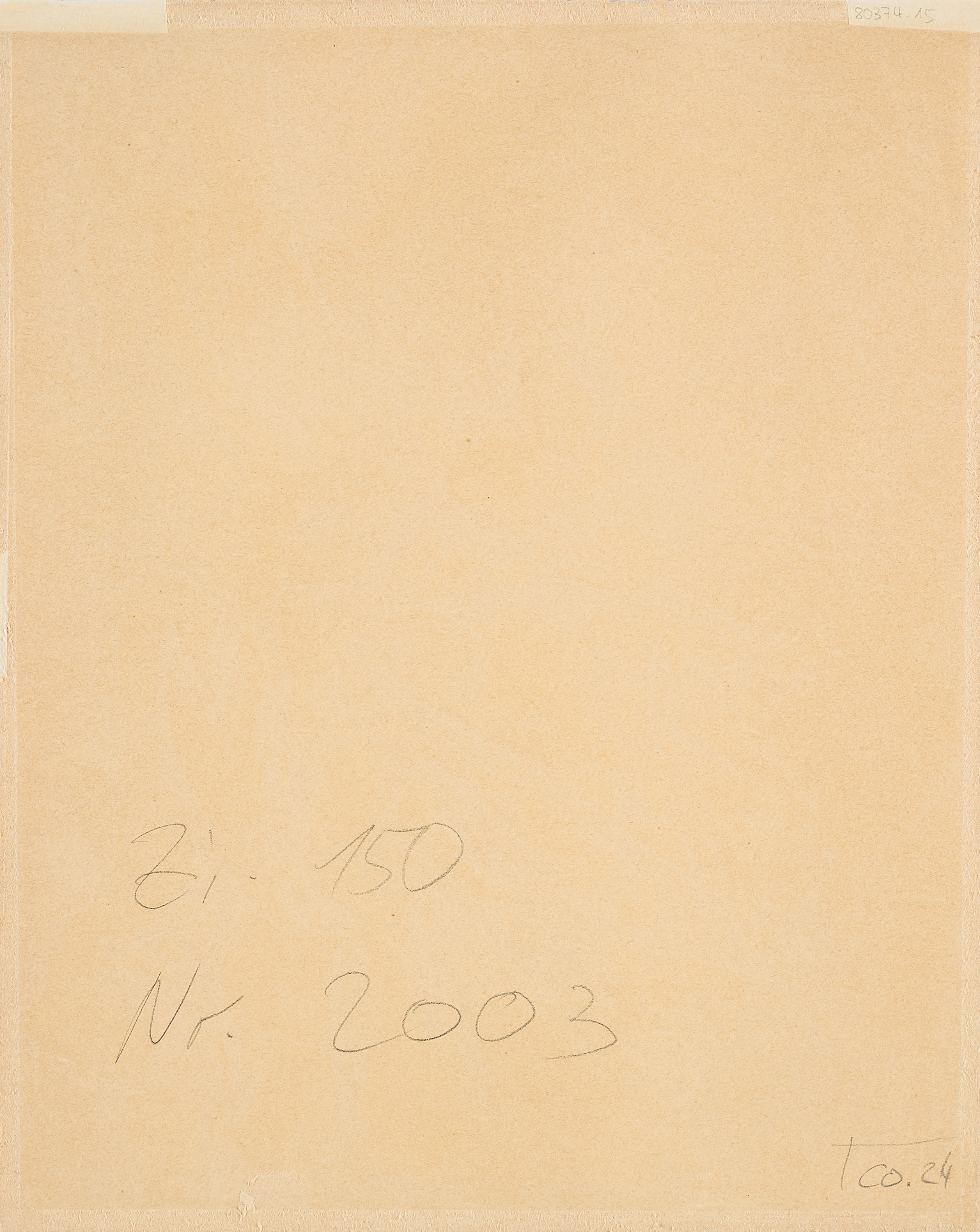Leicht gebräunt und gebräunt an den Kanten. Verso leicht gebräunt und Reste alter Montierung (schlagen recto leicht durch). Ansonsten guter Zustand.