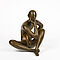 Vereinzelt minimale Bereibungen, z.B. an der Stirn, am rechten Oberarm und am rechten Oberschenkel. Minimale Gipsreste in den Vertiefungen, z.B. an der linken Hand und am rechten Fuß. Minimal fleckige Patina, z.B. am linken Schienbein und am linken Fuß. Ansonsten guter Zustand.
