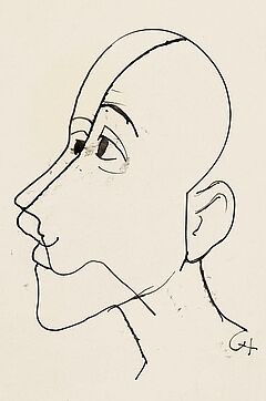 Doppelprofil. Um 1953. Tusche auf leichtem Karton. 41,5 x 31cm. Monogrammiert unterhalb der Darstellung rechts: CH (ligiert). Rahmen.
