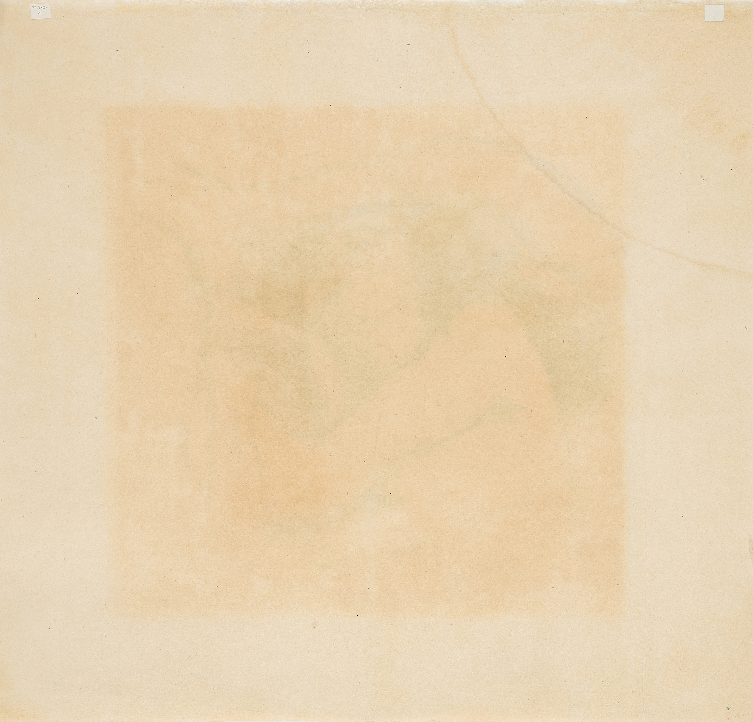 Blatt im ehemaligen Passepartoutausschnitt leicht gebräunt. Spuren von Flüssigkeitseinwirkung im linken oberen Blattbereich. Verso Reste alter Montierung. Ansonsten guter Zustand.