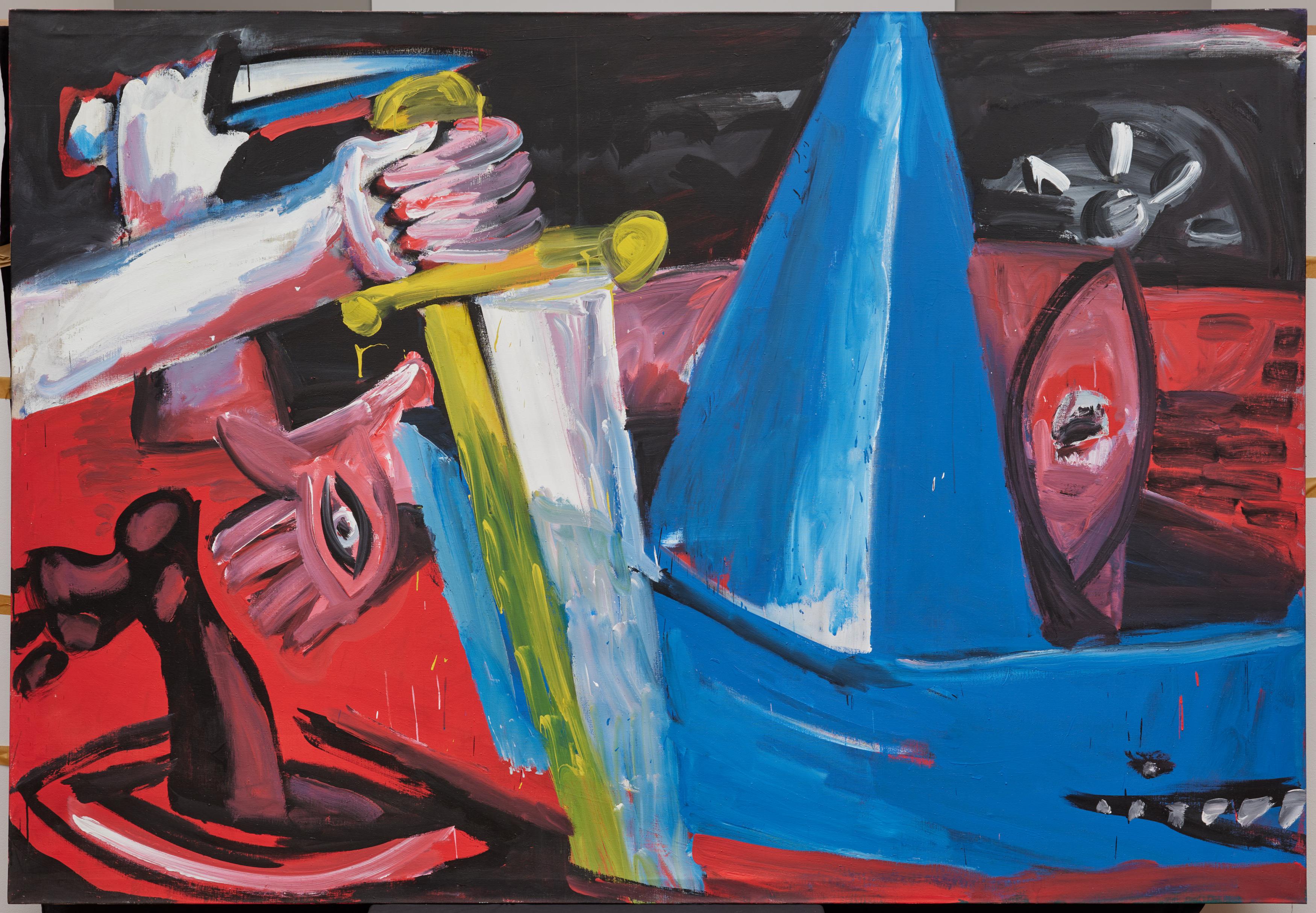 Bezeichnung: Signiert, datiert und bezeichnet verso oben: Hödicke 85 Beware the Jabberwook my son! Ork-orka "Spektakel" Seascape "die Atlantikschlacht".