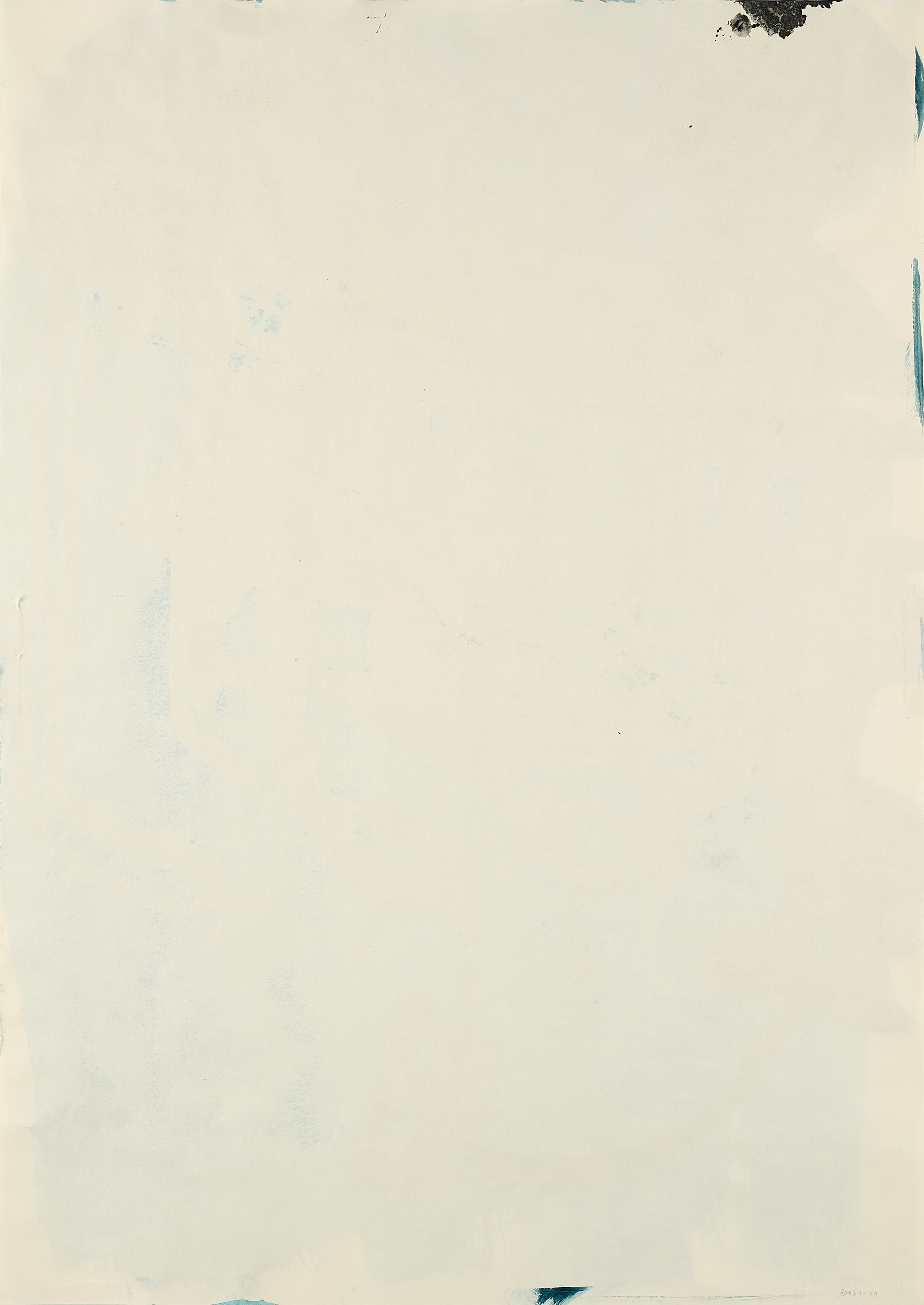 Herstellungsbedingt minimal gewellt. Minimal klebrige Oberfläche, minimal anhaftender Staub. Verso Arbeitsspuren sowie Reste alter Montierung. Ansonsten guter Zustand.