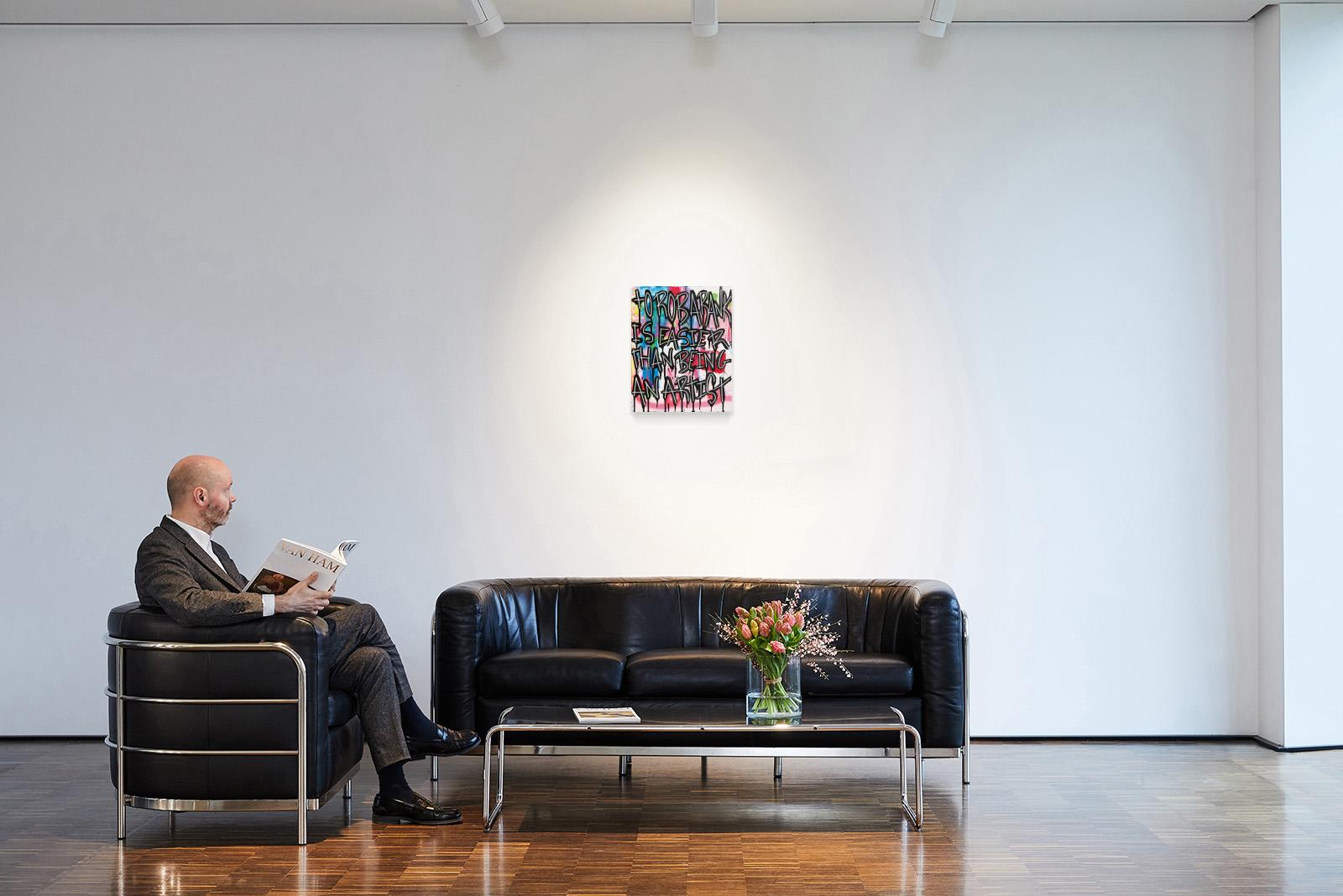Technik: Acryl und Sprühfarbe auf Leinwand.