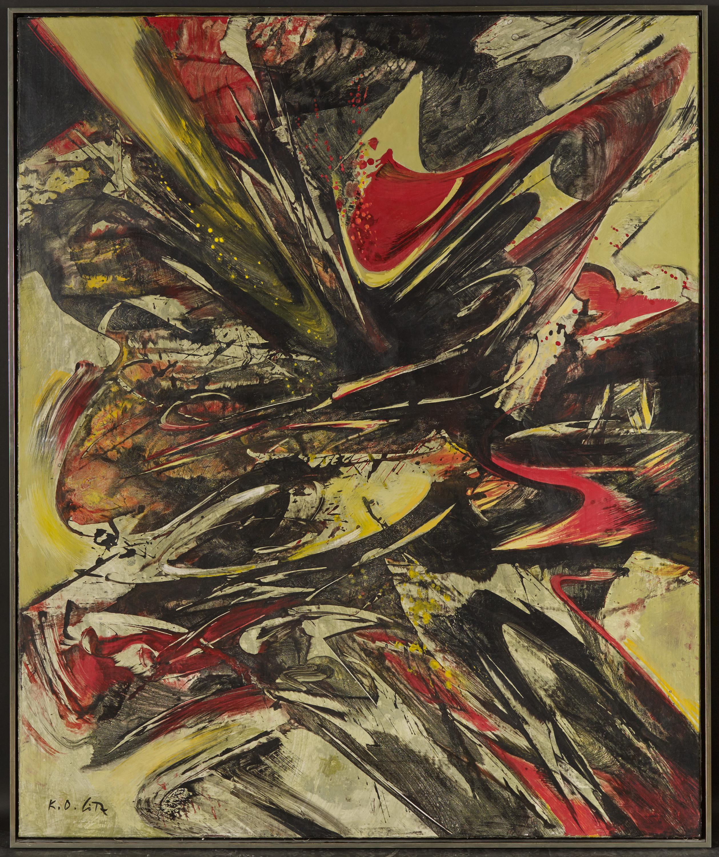 Karl Otto Götz gehört bis heute zu den bedeutendsten Vertretern der deutschen informellen Malerei. Mit seiner energiegeladenen, an Actionpainting erinnernde Maltechnik, nehmen seine Werke eine Sonderstellung ein und finden auch über seinen Tod hinaus internationale Beachtung. Bereits in den frühen 1950er Jahren findet Karl Otto Götz zu seiner schnellen und kraftvollen Malweise, bei der er durch Schwünge undefinierbare Formen zu Papier bringt.