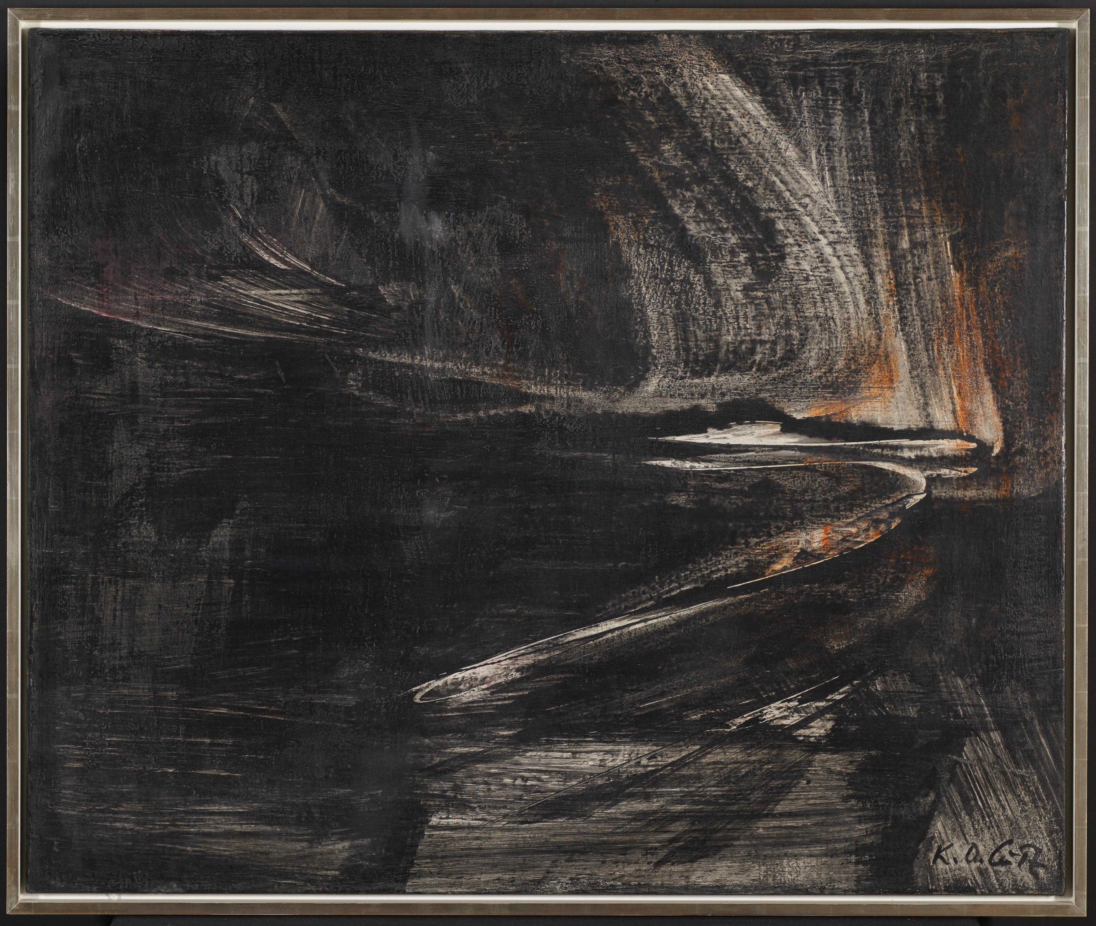 Bezeichnung: Signiert unten rechts: K.O. Götz. Signiert, betitelt und datiert verso oben rechts: K.O. GÖTZ "SVAN" 1960. Darunter bezeichnet: Karin zugeeignet Dez. 1965.