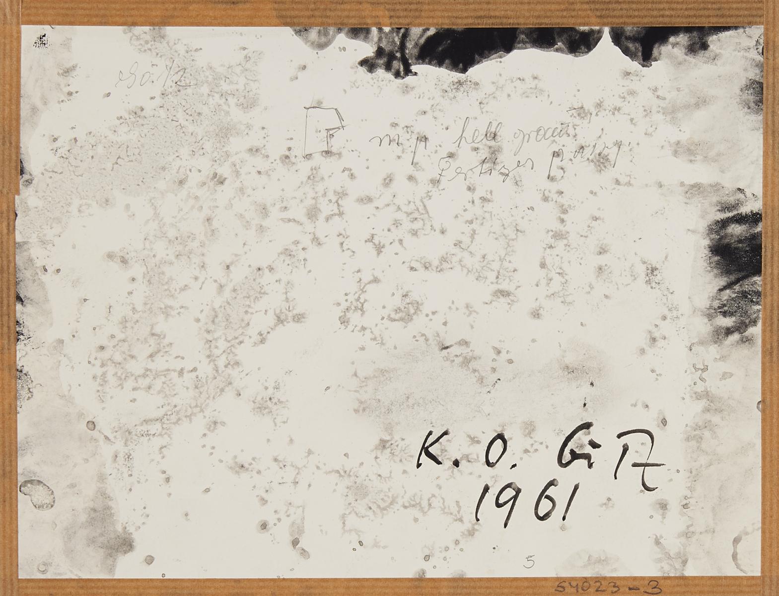 Ohne Titel. 1961. Gouache auf Karton. 16,5 x 22cm. Signiert unten links: K. O. Götz. Verso signiert und datiert unten links: K. O. Götz 1961. Darüber wohl Angaben für ein Passepartout.