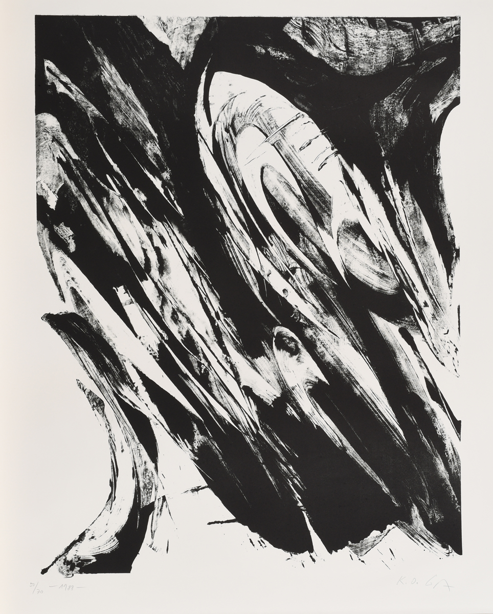 Ohne Titel. 1988. Lithografie auf Bütten. 78 x 59cm (90 x 70cm). Signiert, datiert und nummeriert. Manfred Hüglow, Offenbach (Hrsg.). Ex. 50/70.