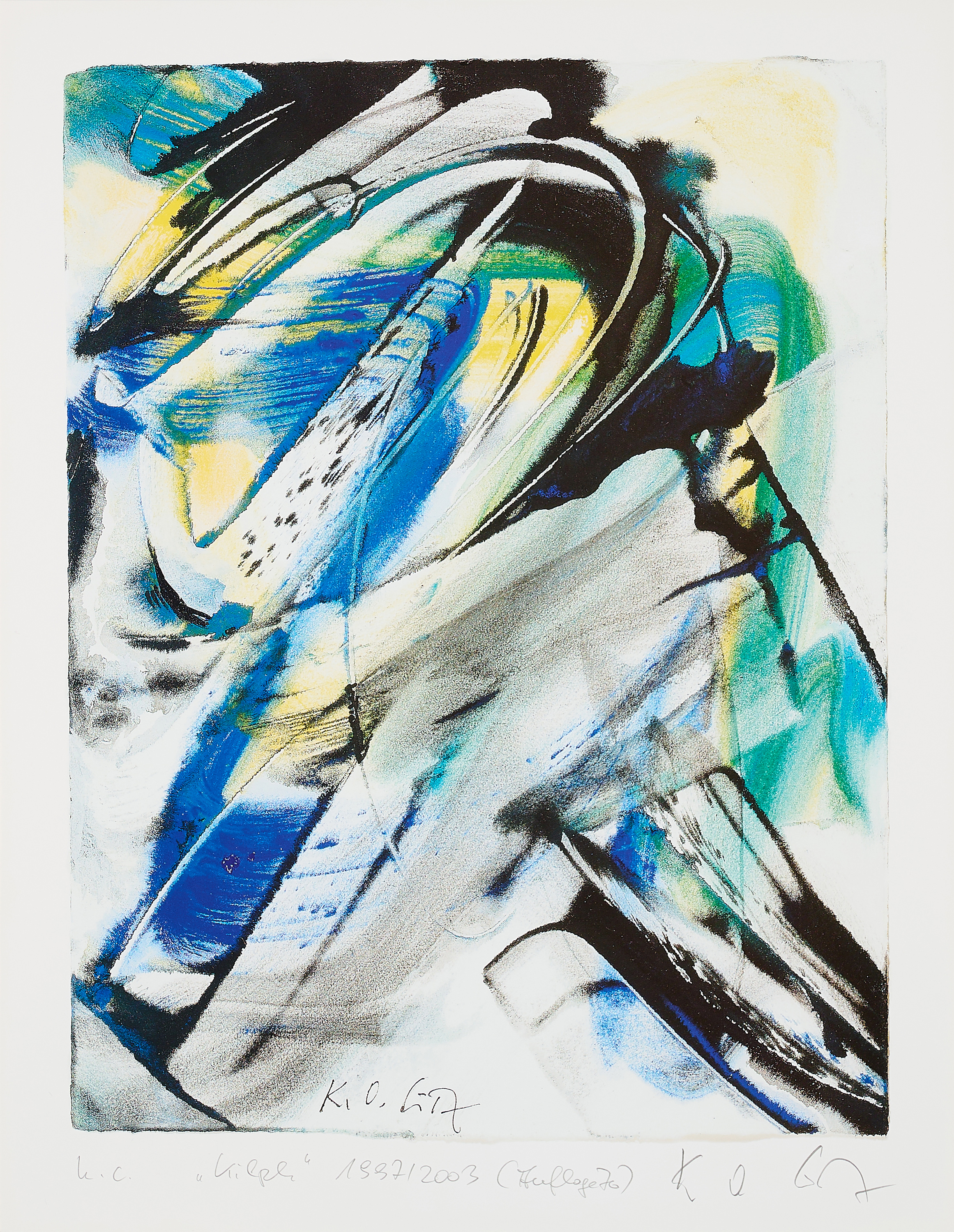 Außerhalb der Auflage von 70 Exemplaren. Nach einer Gouache von 1997. Herausgegeben vom Künstler anlässlich der Ausstellung "Impuls und Intention" im Saarlandmuseum, Saarbrücken, 2003.