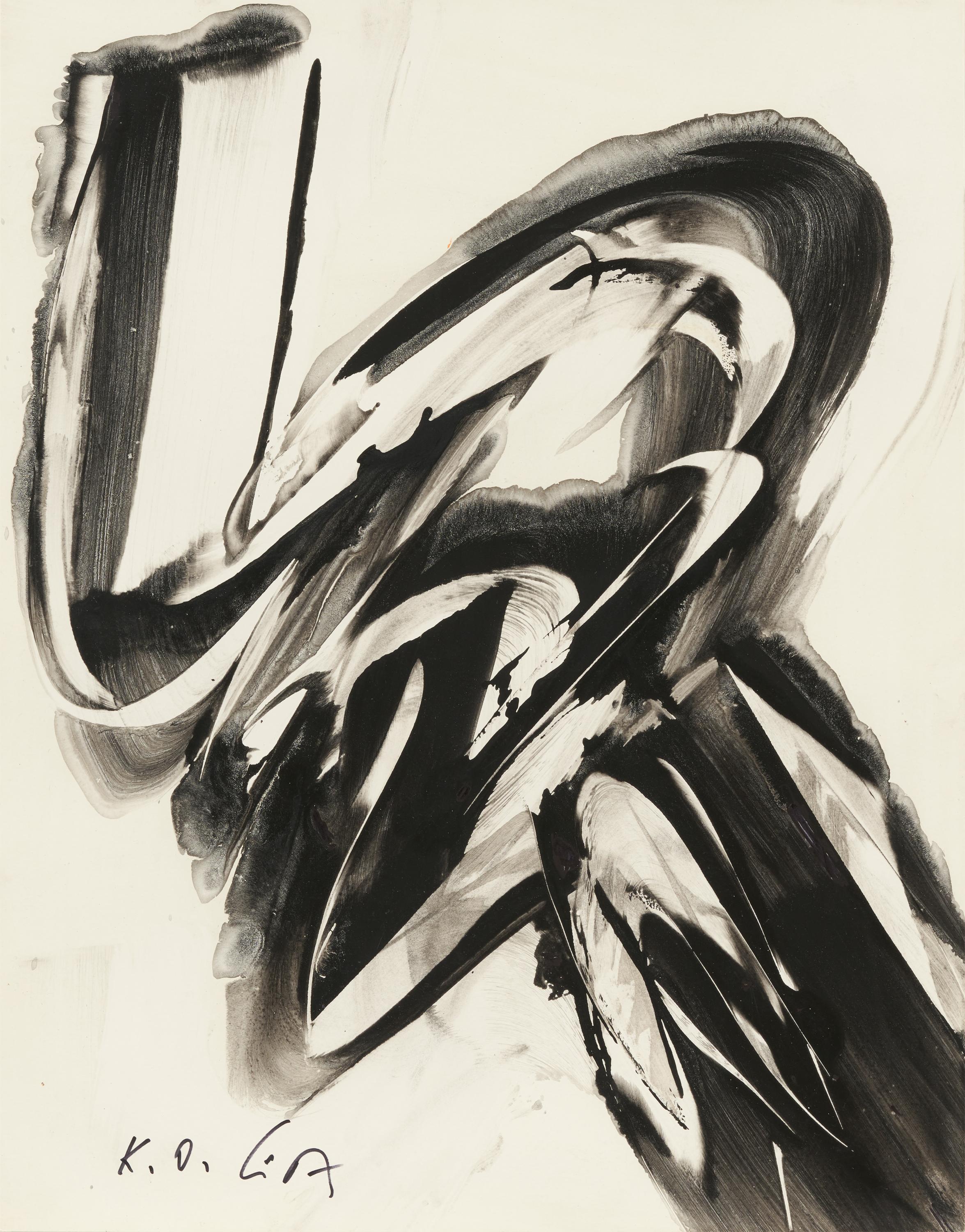 Bezeichnung: Signiert unten links: K.O. Götz. Signiert, bezeichnet und datiert auf der Rahmenwand verso mittig: K.O. Götz o.T. 1995. Darüber mit der Nummer 56 versehen.