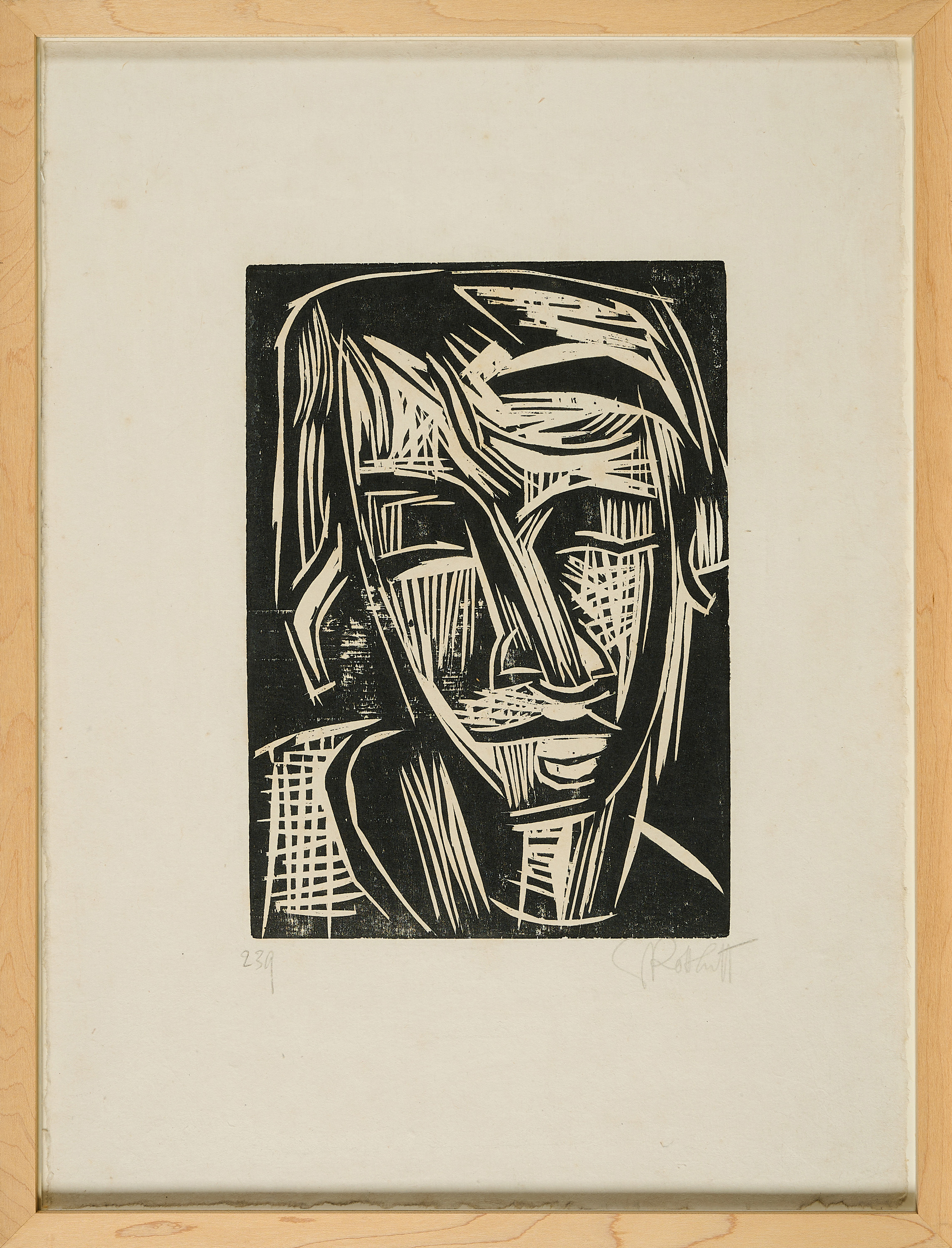 Technik: Holzschnitt auf Bütten.