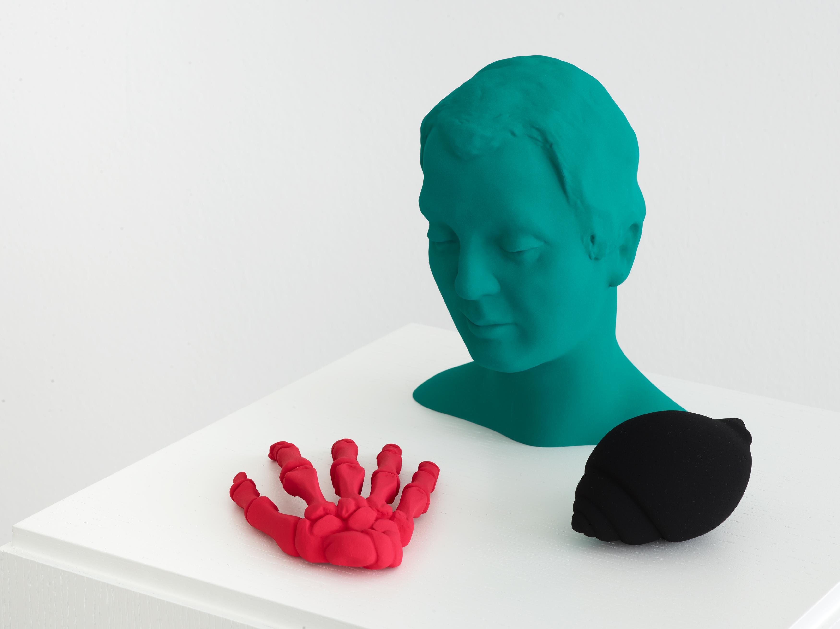 In ihrer Arbeit mit dem Titel "4. Stillleben" präsentiert Katharina Fritsch ein skulpturales Arrangement aus einer Knochenhand, einer Muschel und der Büste eines Mädchens. Diese Gegenstände dienen als Erinnerungsfragmente und stellen dekorative Elemente einer verblassenden Epoche dar. Die Hand spielt auf anatomische Modelle an und erinnert an Fritschs frühere Arbeit "Doktor" von 1999. Auch der Kopf und die Muschel sind von bestehenden Skulpturen abgeleitet, nämlich "1. Gartenskulptur (Torso)" von 2006/08 und "Frau mit Hund" von 2004. Diese einzelnen Elemente sind sorgfältig so angeordnet, dass sie ein traditionelles Stillleben darstellen.