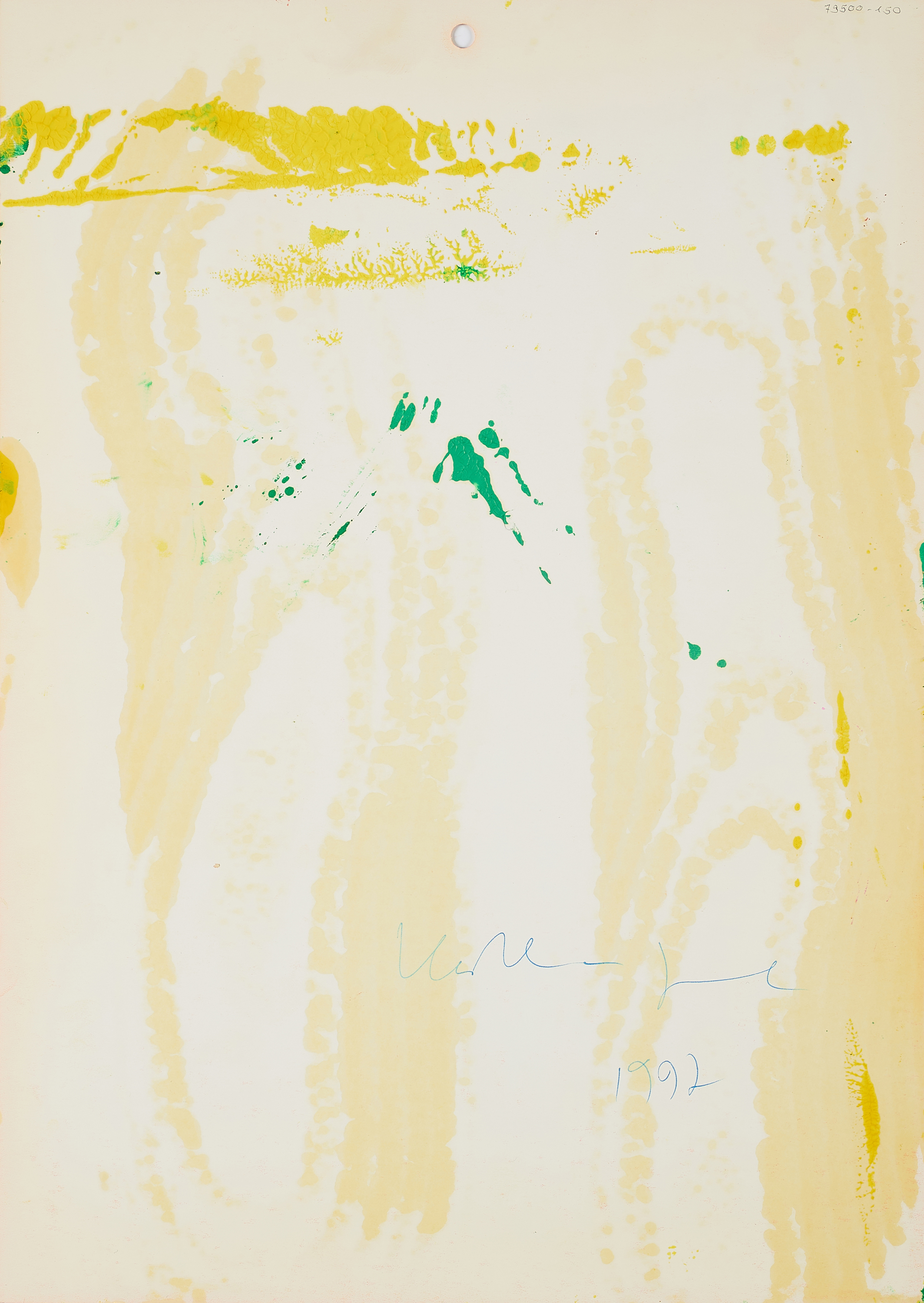 Technik: Acryl über Farboffset auf perforiertem, festem Zeichenpapier.
