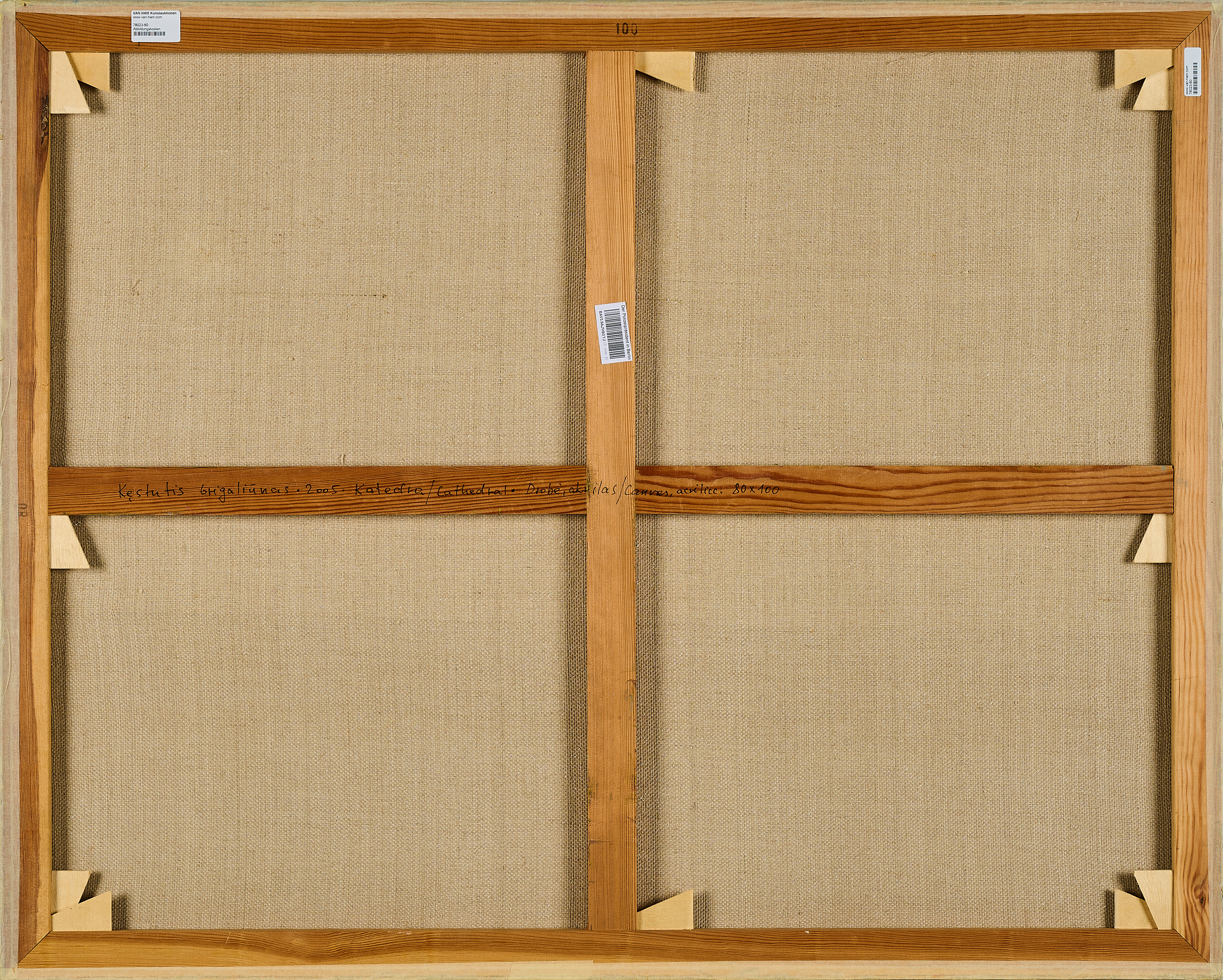 Bezeichnung: Signiert und datiert unten rechts: GRIGALIUNAS 2005. Sowie signiert, datiert, betitelt und bezeichnet verso: KESTUTIS GRIGALIUNAS 2005 Katedra/Cathedral Drobè, akrilas / canvas acrilicc- 80 x 100.