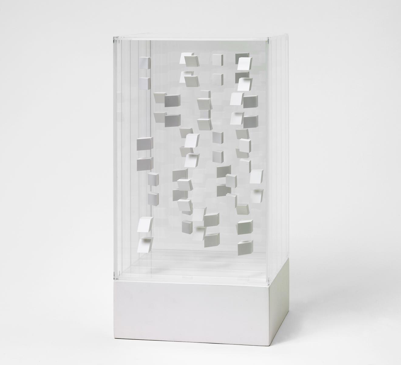 "Duplizität". 2000. Polystyrol, Plexiglas. 42 x 27 x 26,5cm. Betitelt, datiert, nummeriert und signiert unten Mitte auf einer Plexiglaswand: Duplizität, 1-2000, 5/5, Staudt, 2000. Ex. 5/5. Weißer Holzsockel.