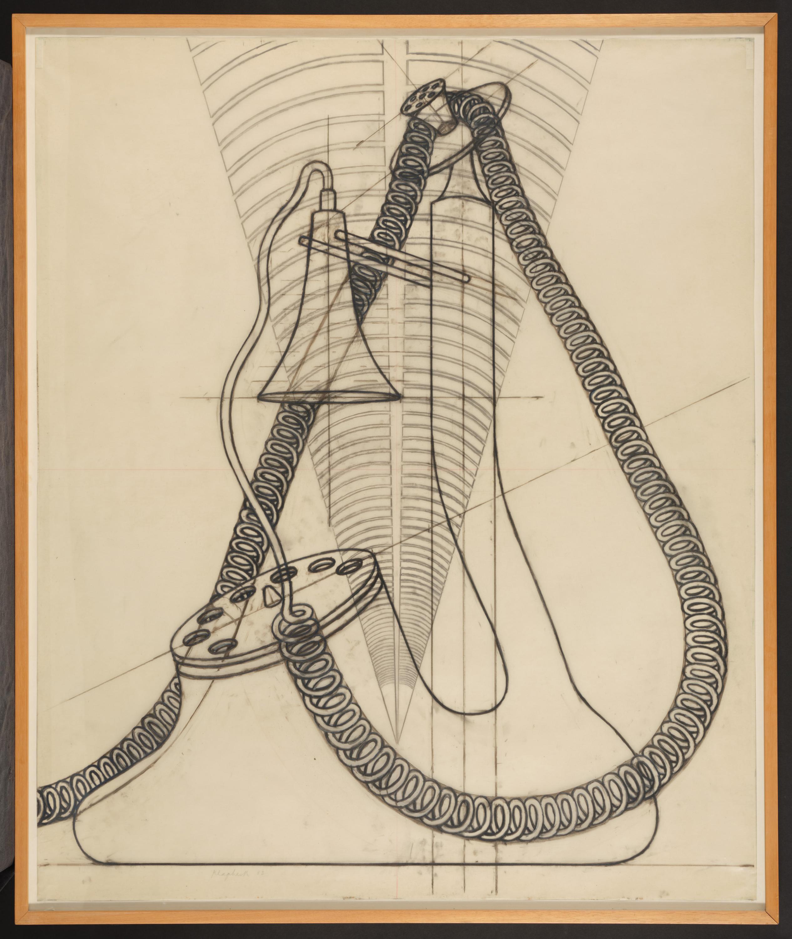 Vor allem in der Ausführung des Motivs in Öl auf Leinwand (siehe Vergleichsabb.) erfüllt diese Lichtgalerie gleich zwei Funktionen: sie schafft nicht nur einen Raum, sondern setzt das bildfüllende Telefon auch mit Hilfe einer Lichtdramaturgie in Szene. Das Ringen um die endgültige Bildfindung und den Arbeitsprozess von der Vorzeichnung zum Gemälde beschreibt Konrad Klapheck in einem Text von 1982 sehr eindrücklich: