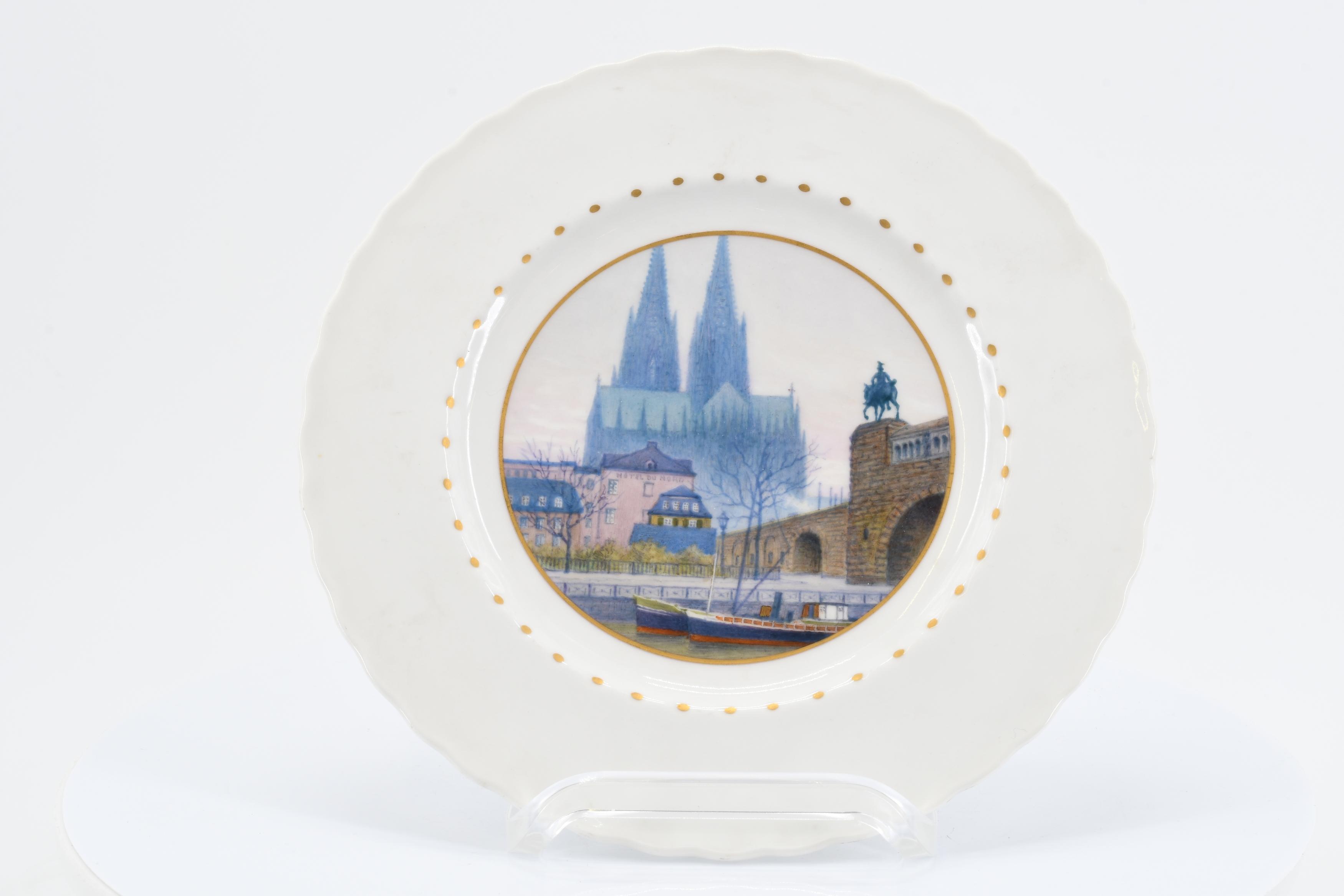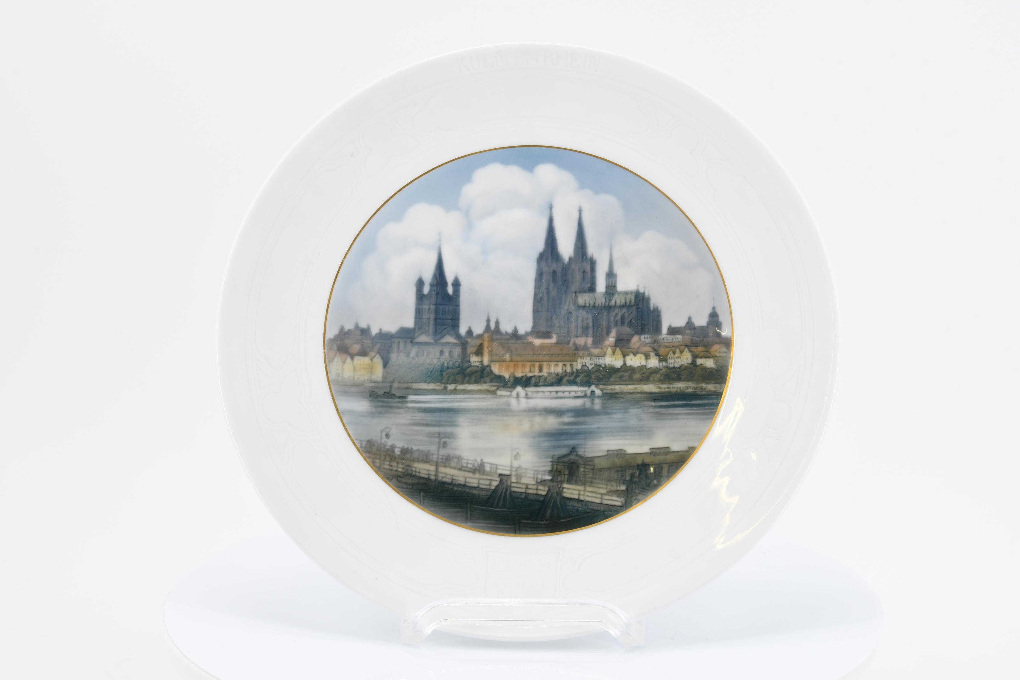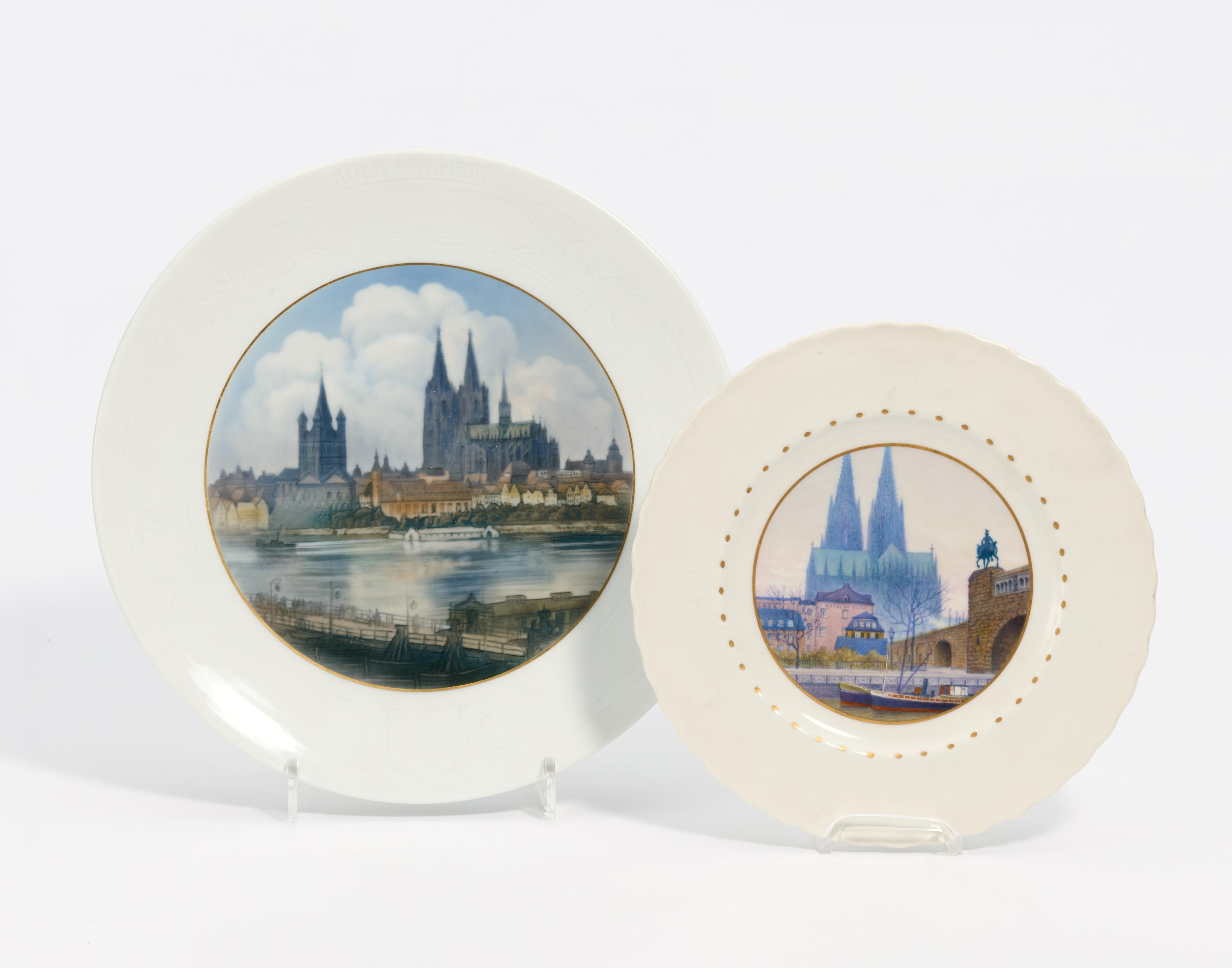 ZWEI TELLER MIT ANSICHTEN VOM KÖLNER DOM.