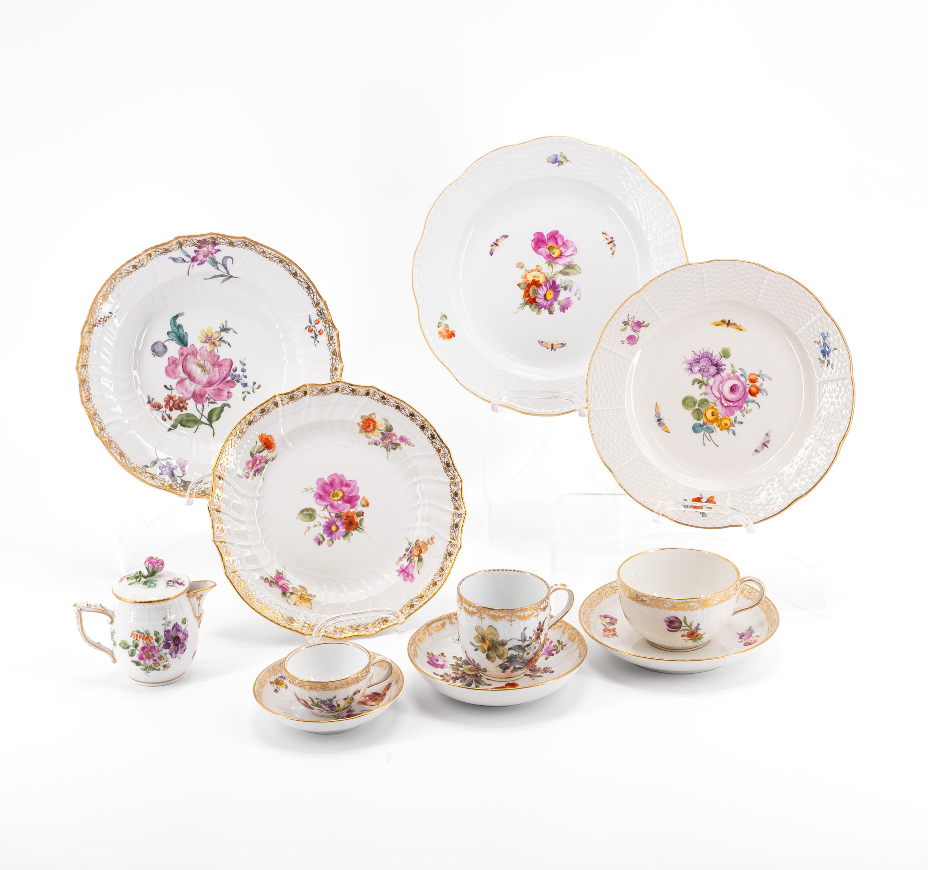 19 TEILE AUS SERVICEN MIT BLUMENDEKOREN.