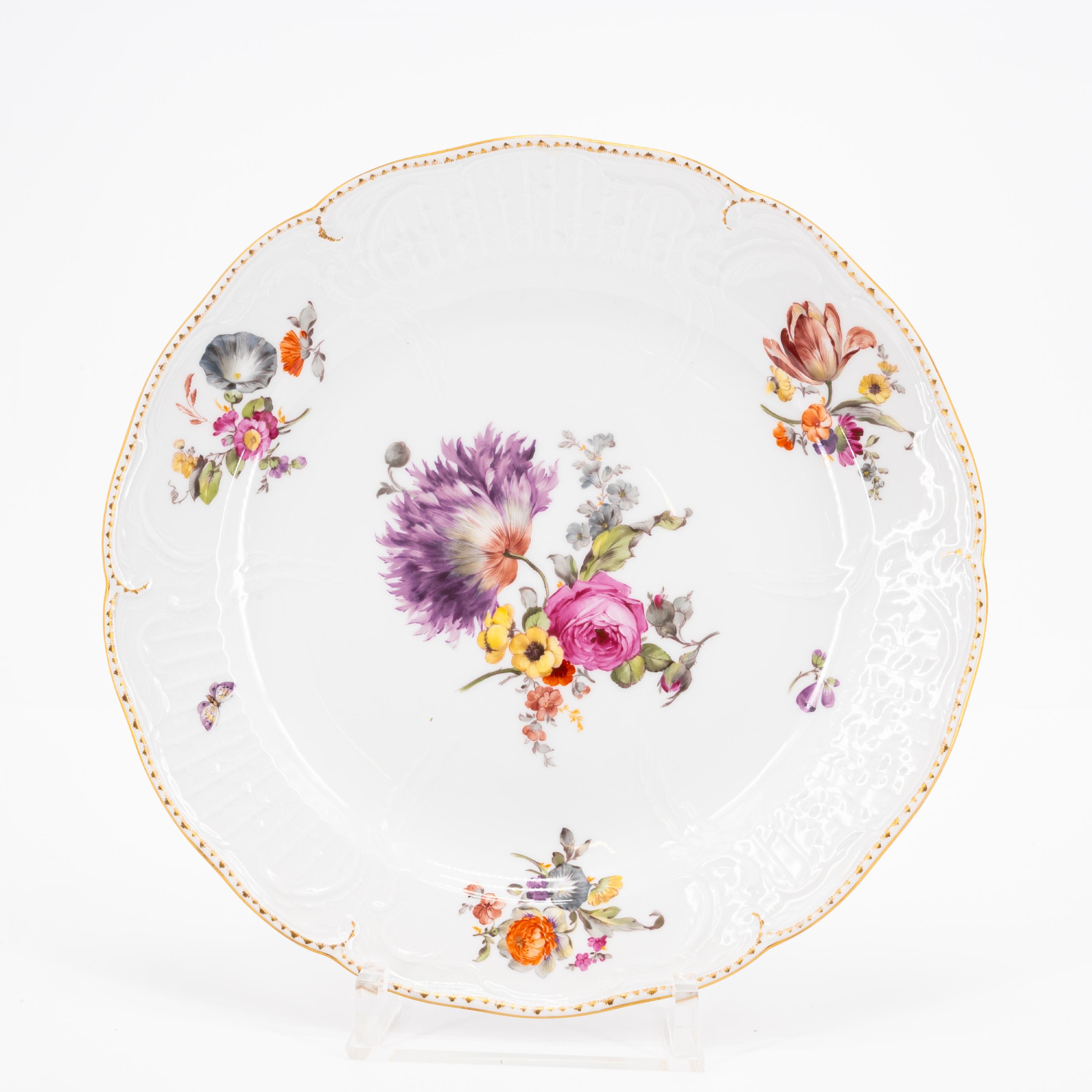 84 TEILE AUS EINEM SPEISESERVICE 'RELIEFZIERRAT' MIT BLUMENDEKOR.