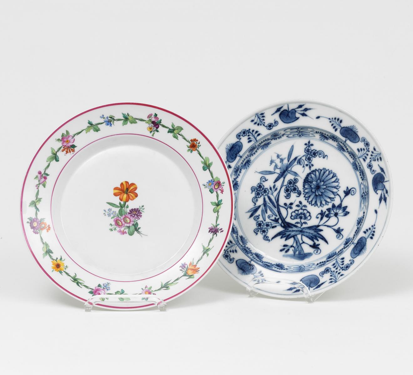 Porzellan, farbig staffiert bzw. Unterglasurdekor. + 24/25cm. Zustand A bzw. B.