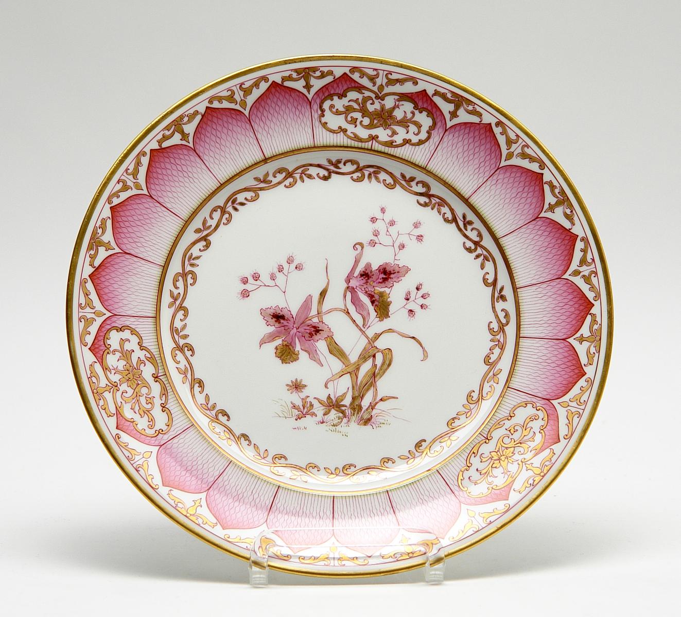 Porzellan, purpurn und gold staffiert. + 24,5cm. Zustand A.